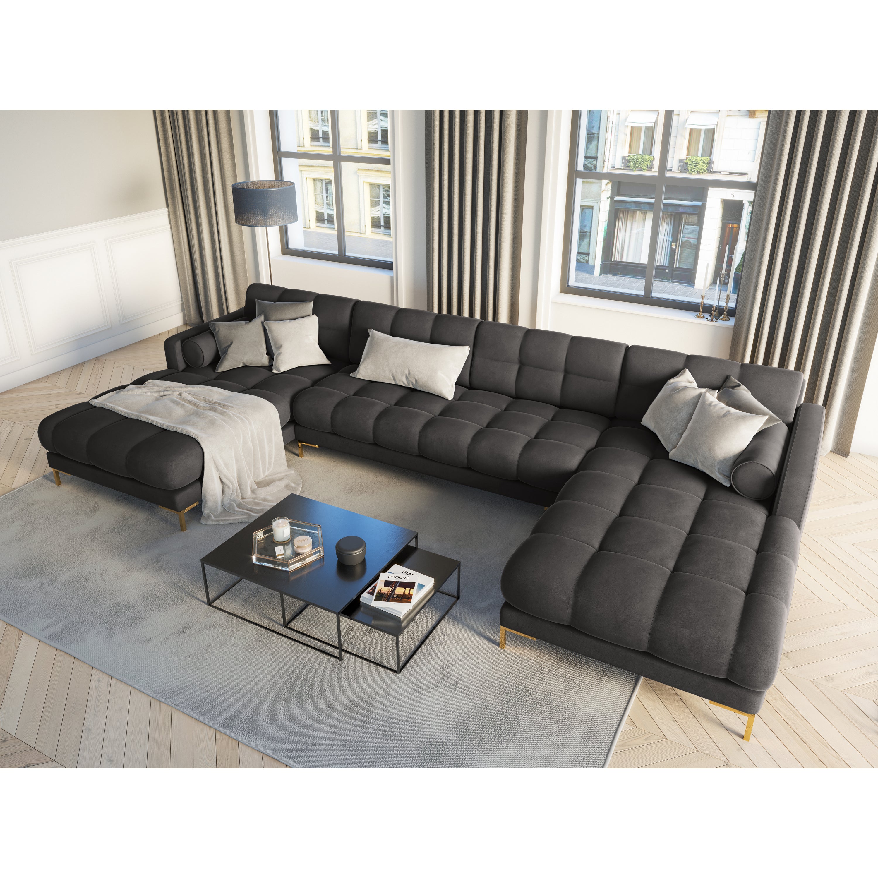- Chique u-bank met de afmetingen H 75 x B 383 x D 185 cm