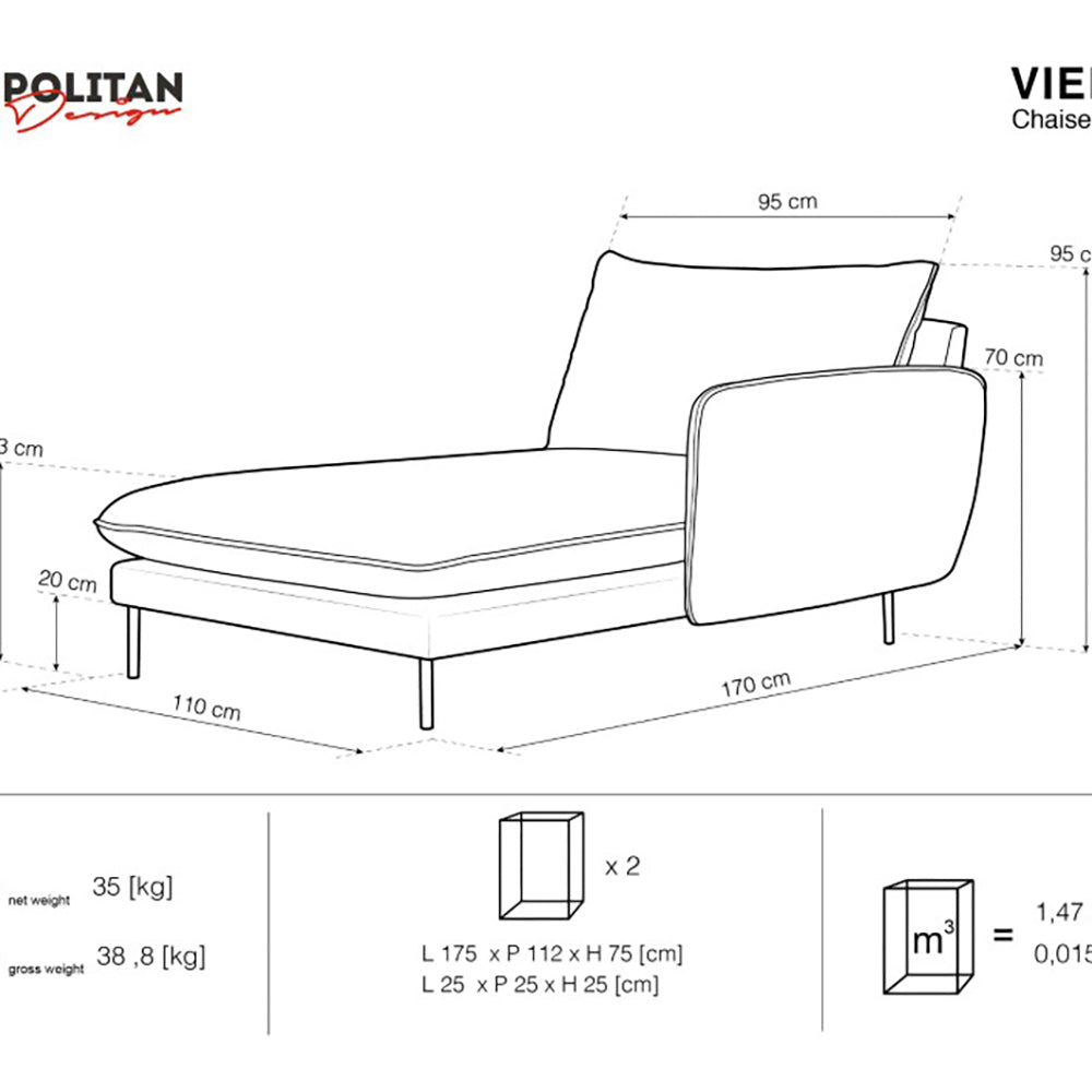 Cosmopolitan Design Vienna Chaise Longue Rechts - Velvet - Beige