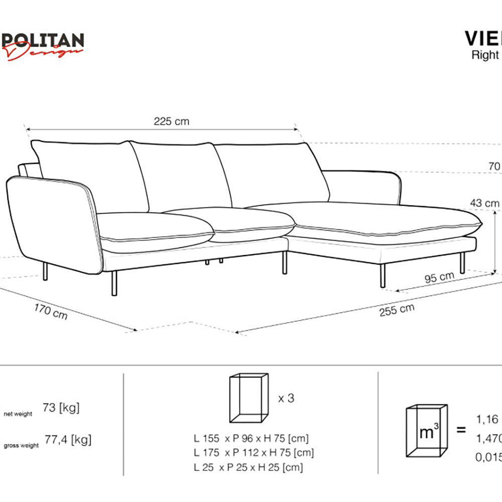 Cosmopolitan Design Vienna Hoekbank met Chaise Longue Rechts - Velvet - Beige