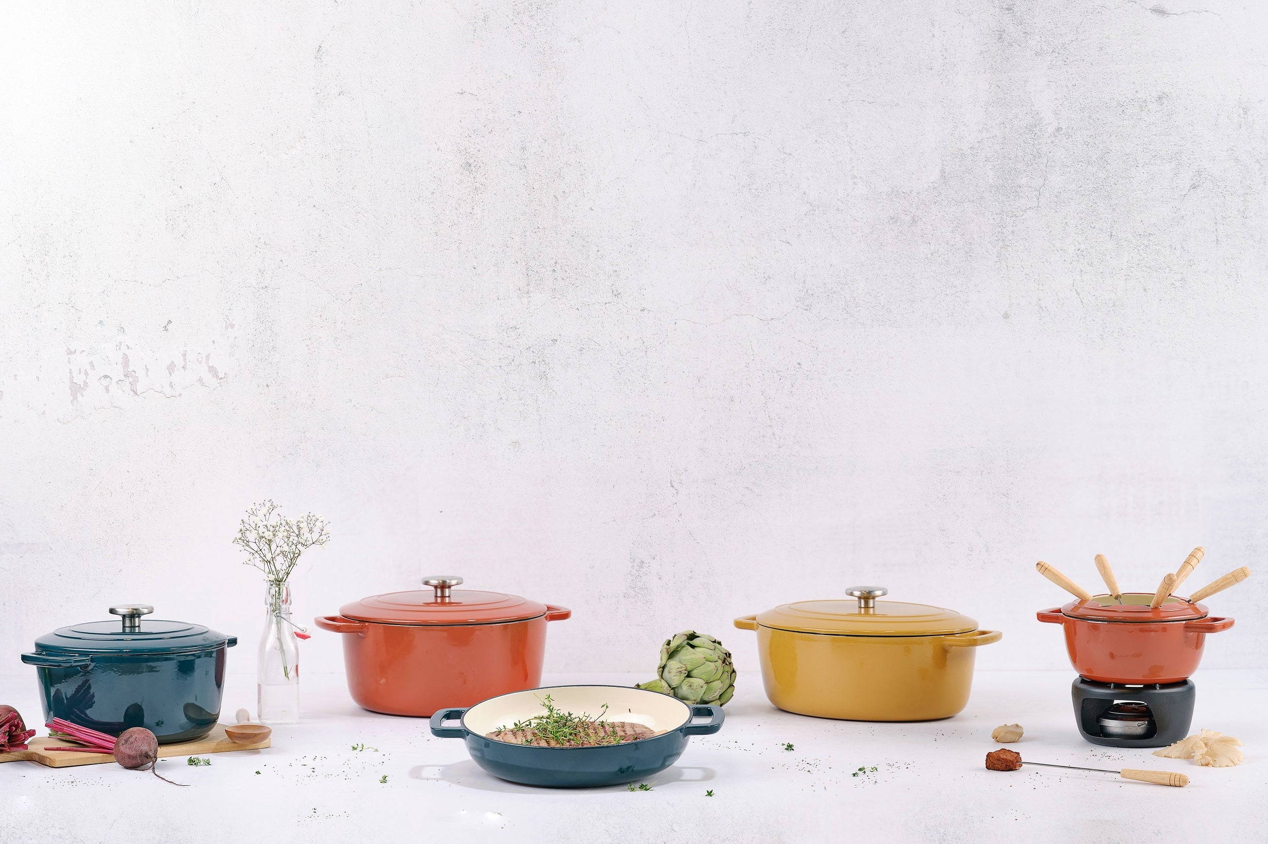 - De geëmailleerde binnenkant zorgt voor een perfecte warmteverdeling en voorkomt dat het eten aanbrandt.