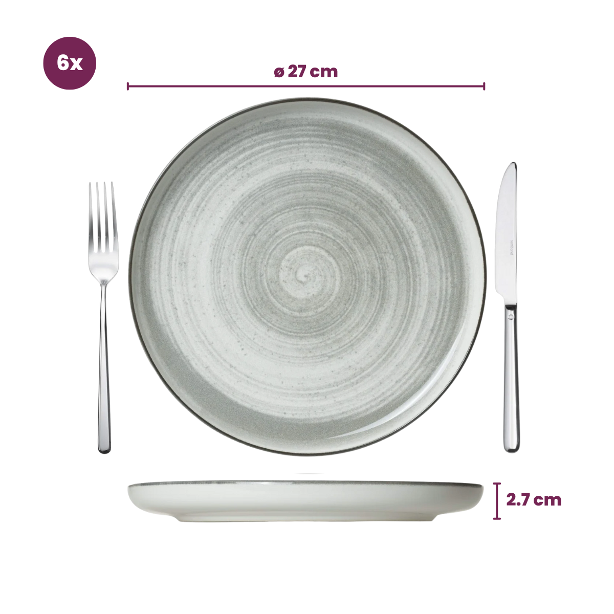 Cosy & Trendy Dinerborden Baltic Grey ø 27 cm - 6 stuks