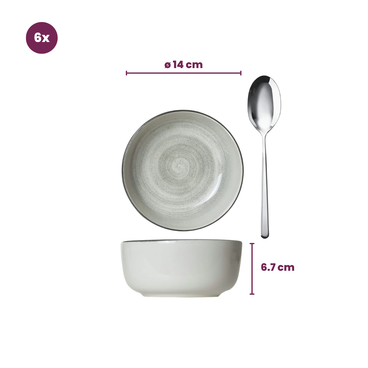 Cosy & Trendy Serviesset Baltic Grey 18-delig | 6 personen - 6 borden, 6 diepe borden en 6 schaaltjes