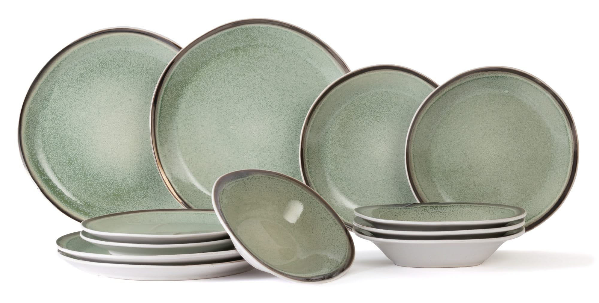 Cosy & Trendy Serviesset Fez - Groen - 12-delig | 4 personen - 4 dinerborden, 4 ontbijtborden en 4 diepe borden