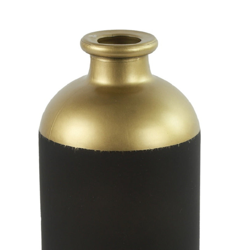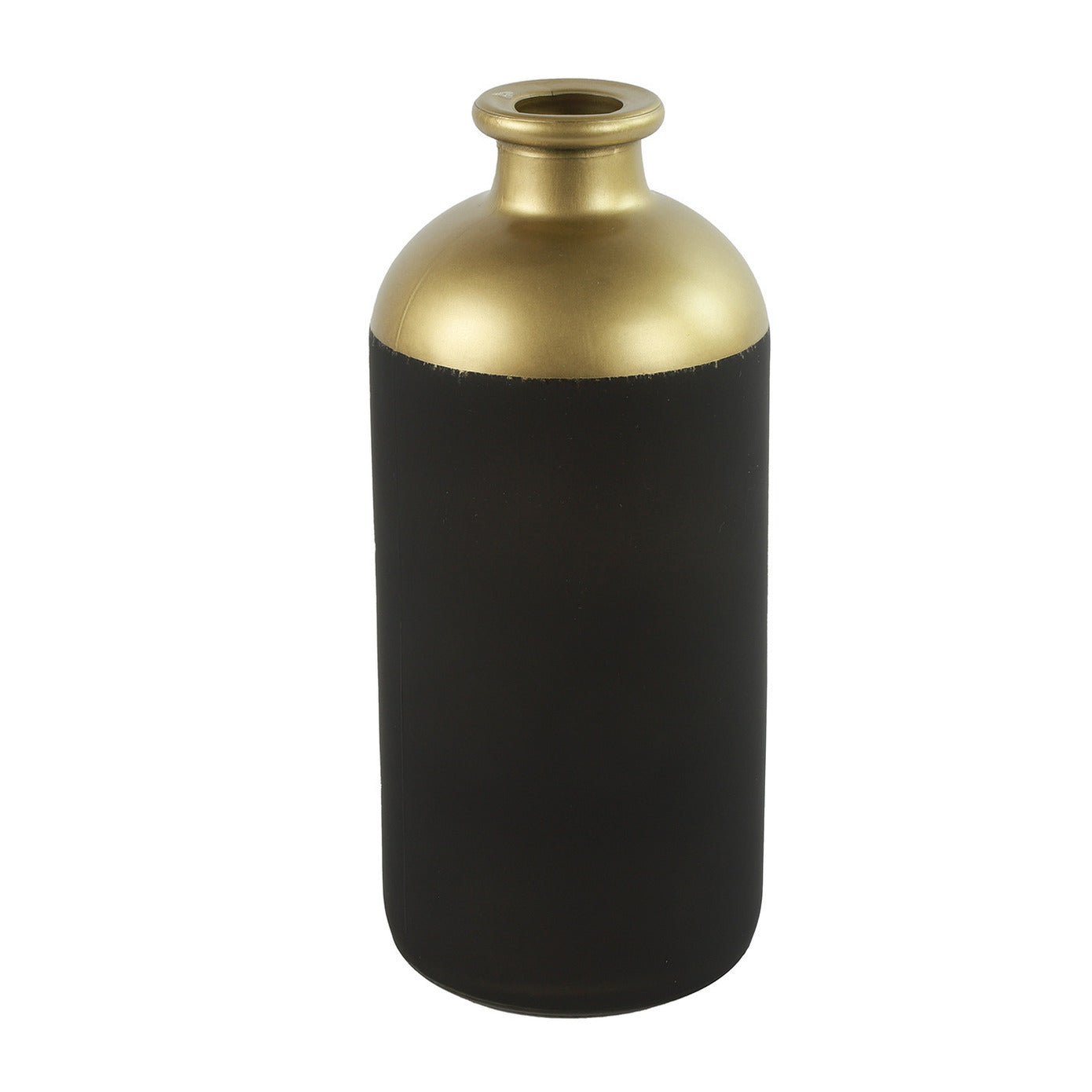 Countryfield Bloemen|deco vaas - zwart|goud - glas - 11 x 25 cm