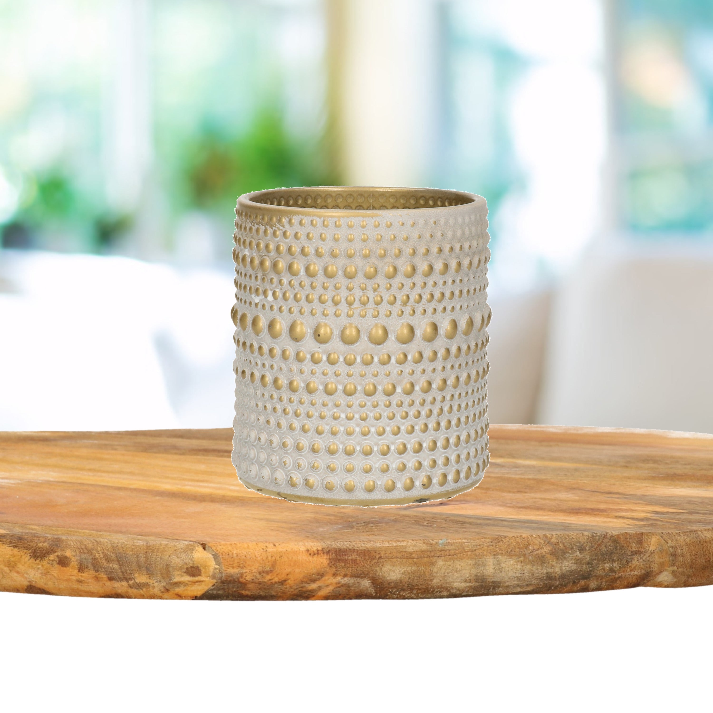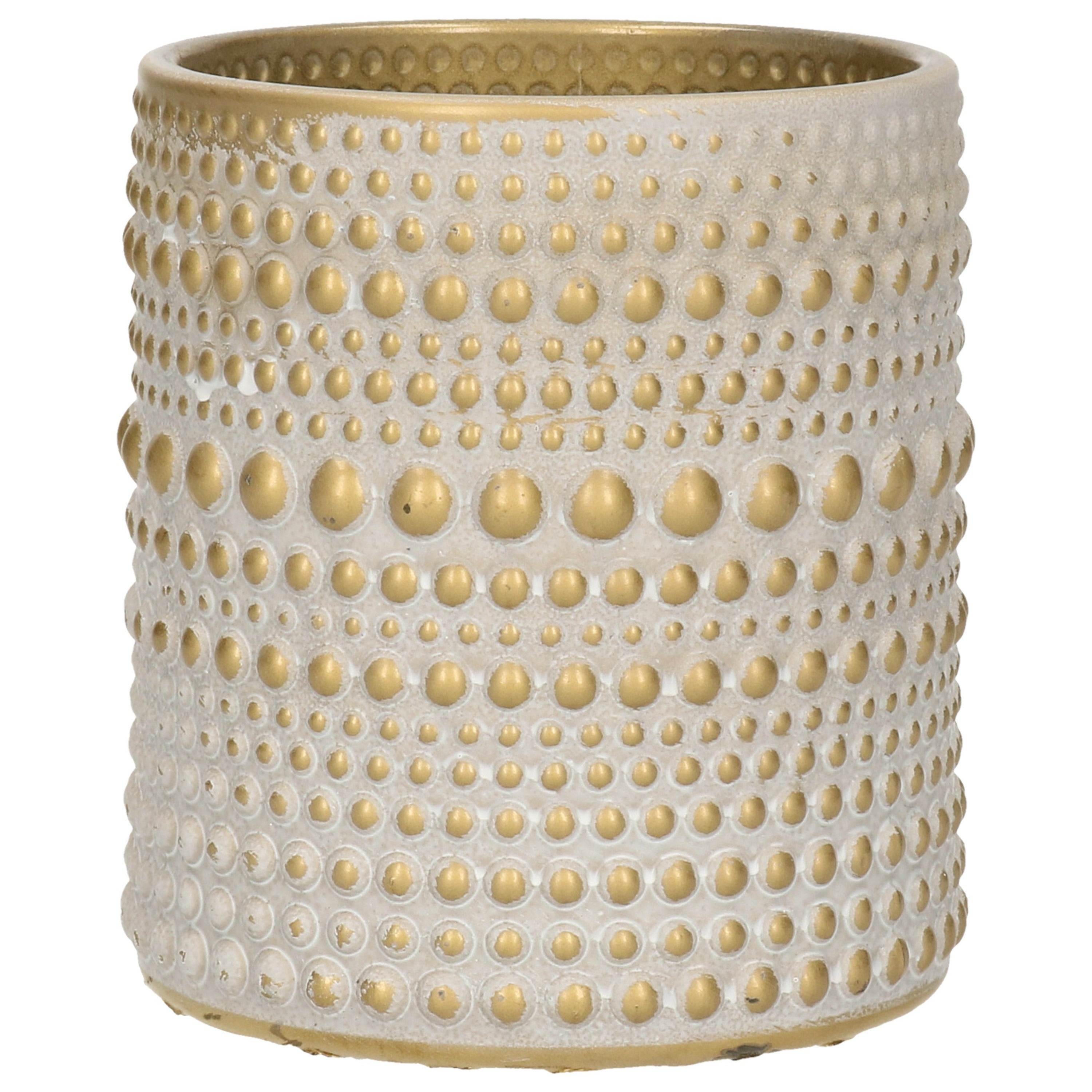 Countryfield theelichthouder|kaarsenhouder - creme wit|goud - H10 cm