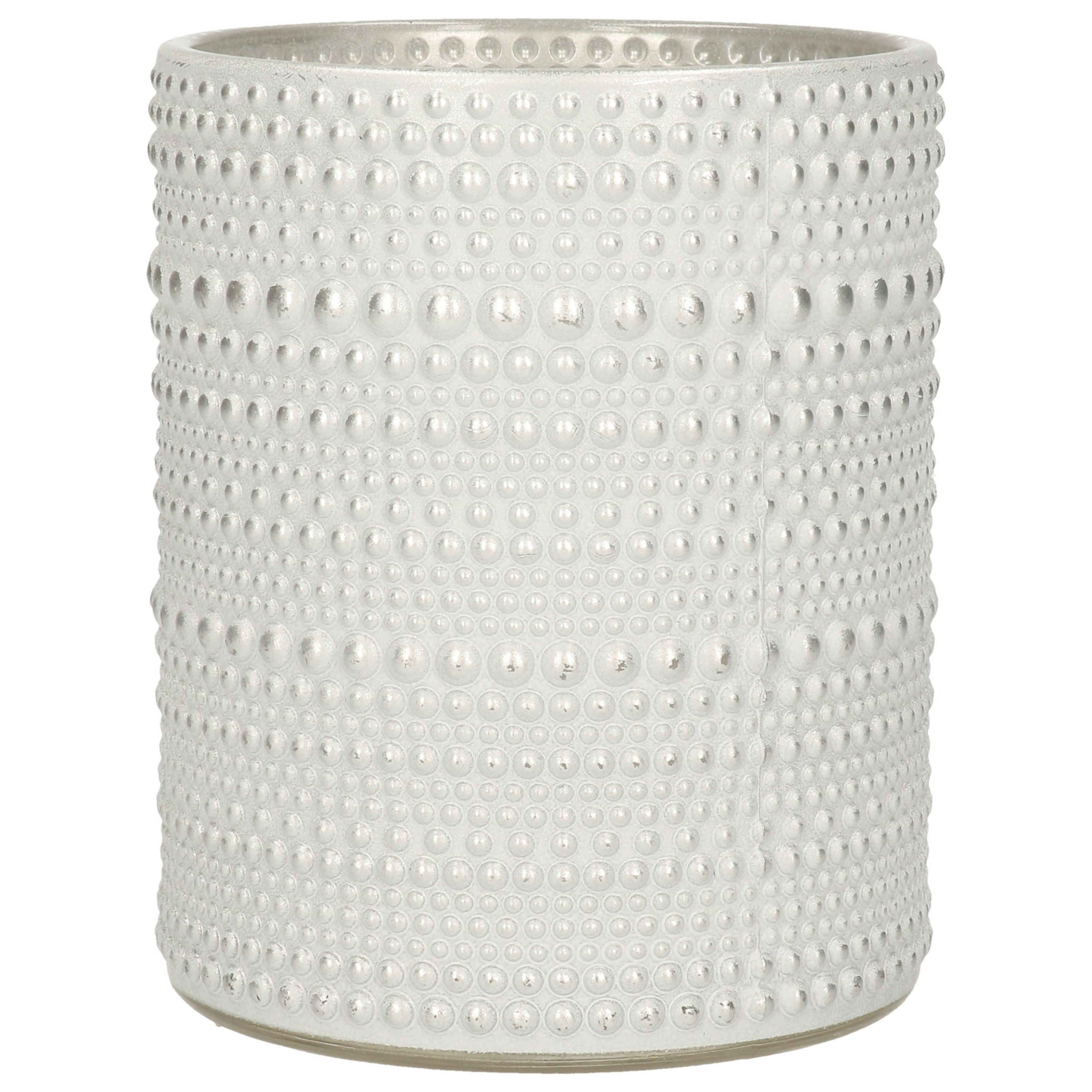 Countryfield theelichthouder|kaarsenhouder - parel wit|zilver - H12 cm