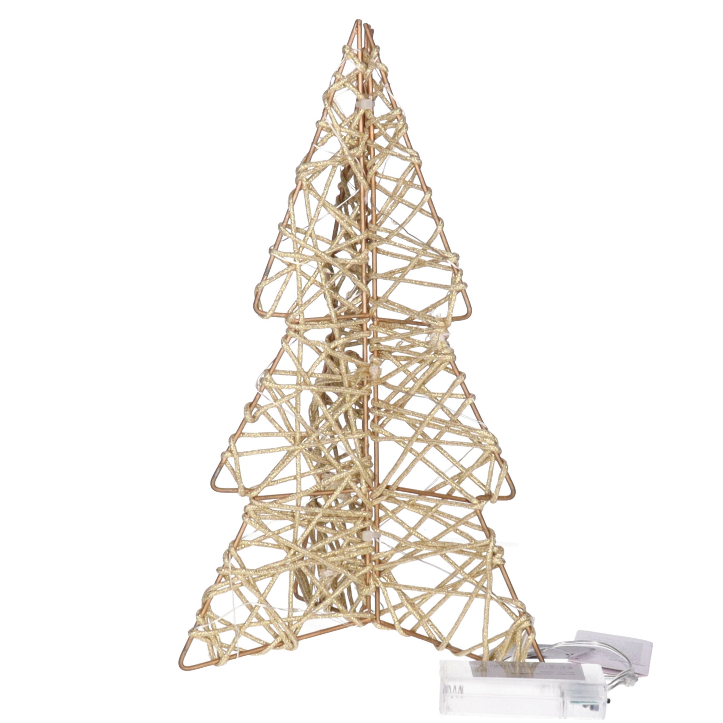 Verlichte 3D lichtboom/kerstboom met 20 led lichtjes. Deze metalen kerstboom is ongeveer 19 x 19 x 31 cm groot en geeft een prachtig sfeervol warm wit licht. De boom is goud van kleur, werkt op 2 AA batterijen (niet inbegrepen) en is inclusief handige timer functie om de kerstboom automatisch aan en uit te laten schakelen om een bepaalde tijd. Voor binnen. Breng een gezellige ambiance toe aan je huis met deze prachtige verlichte kerstboom.
