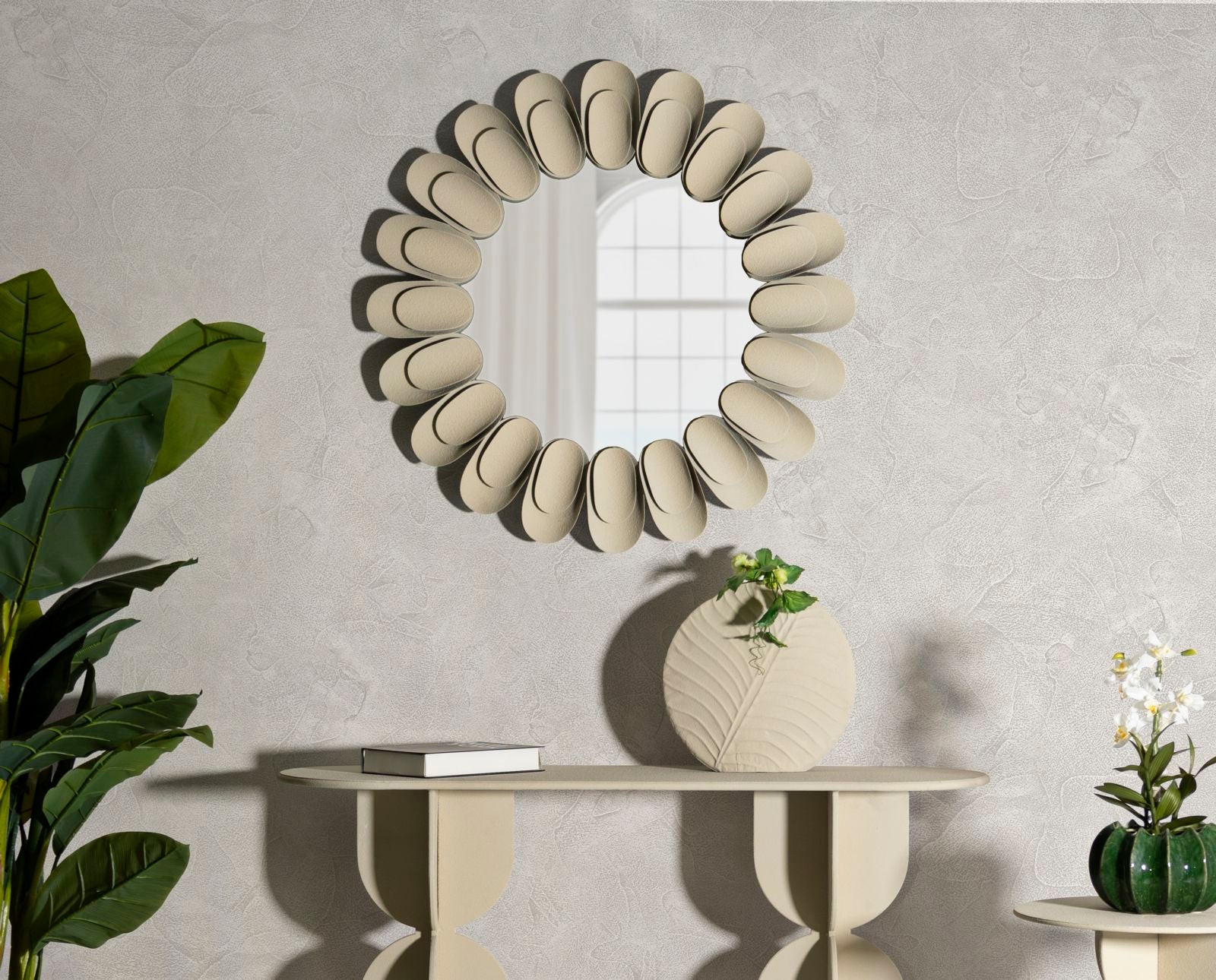 Crèmekleurige metalen wandspiegel, ø 85x6 cm