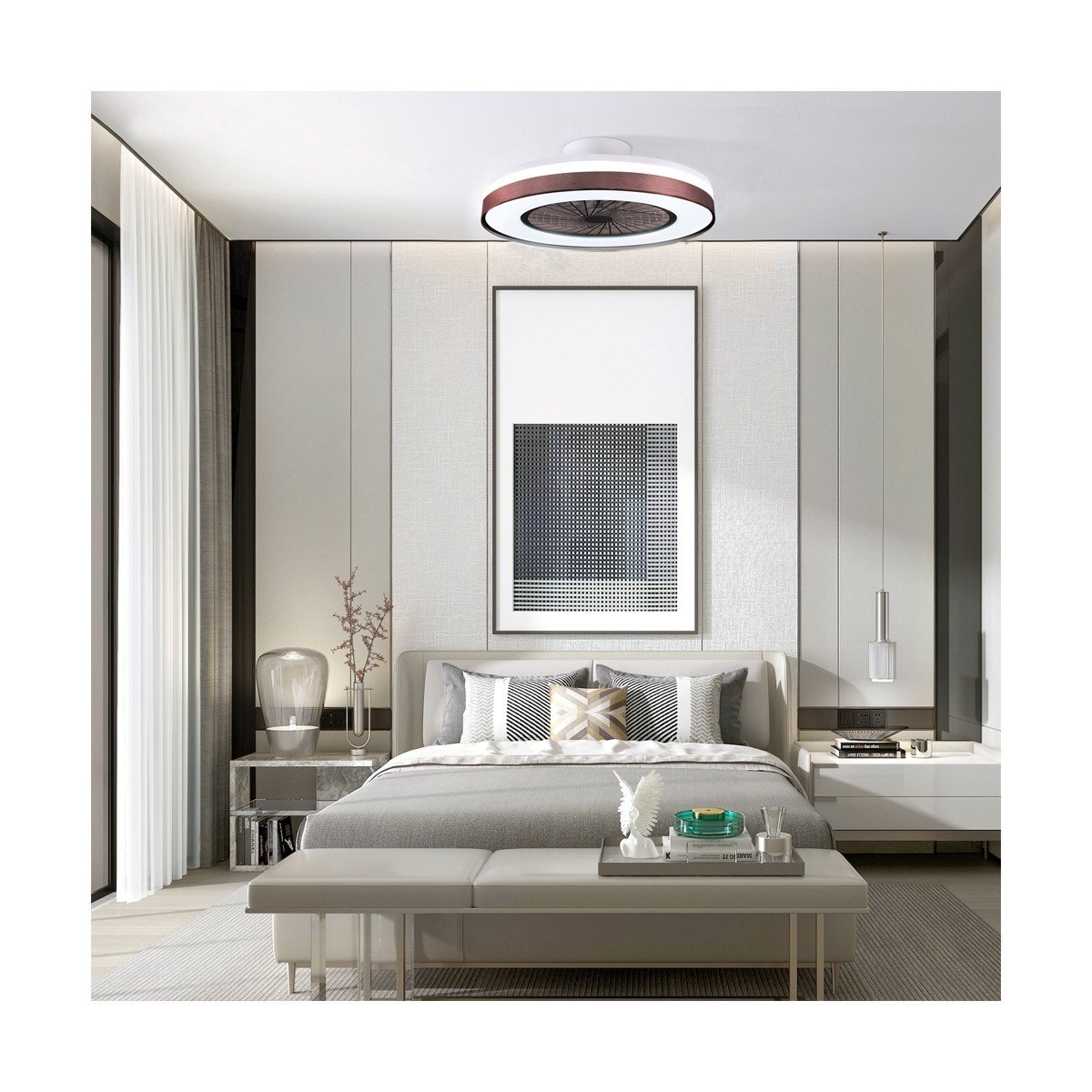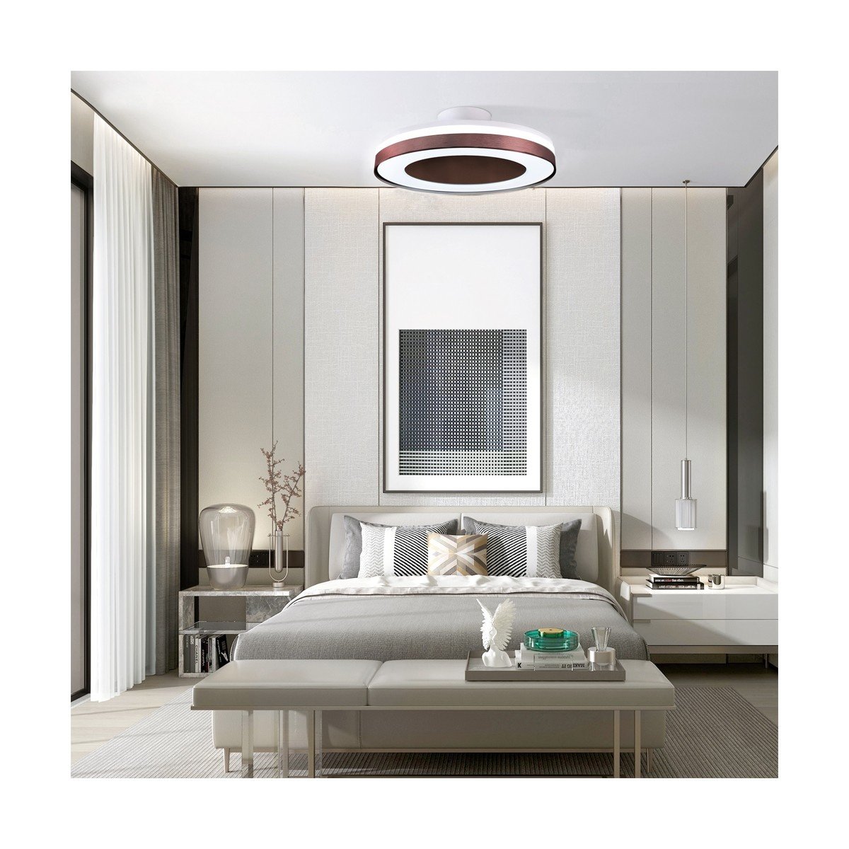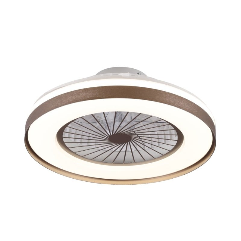 De Tune is een moderne brons kleurige lamp / plafondventilator, speciaal ontworpen voor slaapkamers en compacte woonruimtes. Hij is uitgerust met een LED-ring die de kamer van sfeervolle verlichting voorziet. Met de meegeleverde afstandsbediening regel je eenvoudig de helderheid, de kleurtemperatuur en de ventilatorsnelheid, die in zes standen instelbaar is. De lamp biedt zowel warm als koel wit licht, wat zorgt voor een dynamisch lichtspel. Daarnaast beschikt de ventilator over een handige timerfunctie, waarmee hij na 1, 2, 4 of 8 uur automatisch uitschakelt.