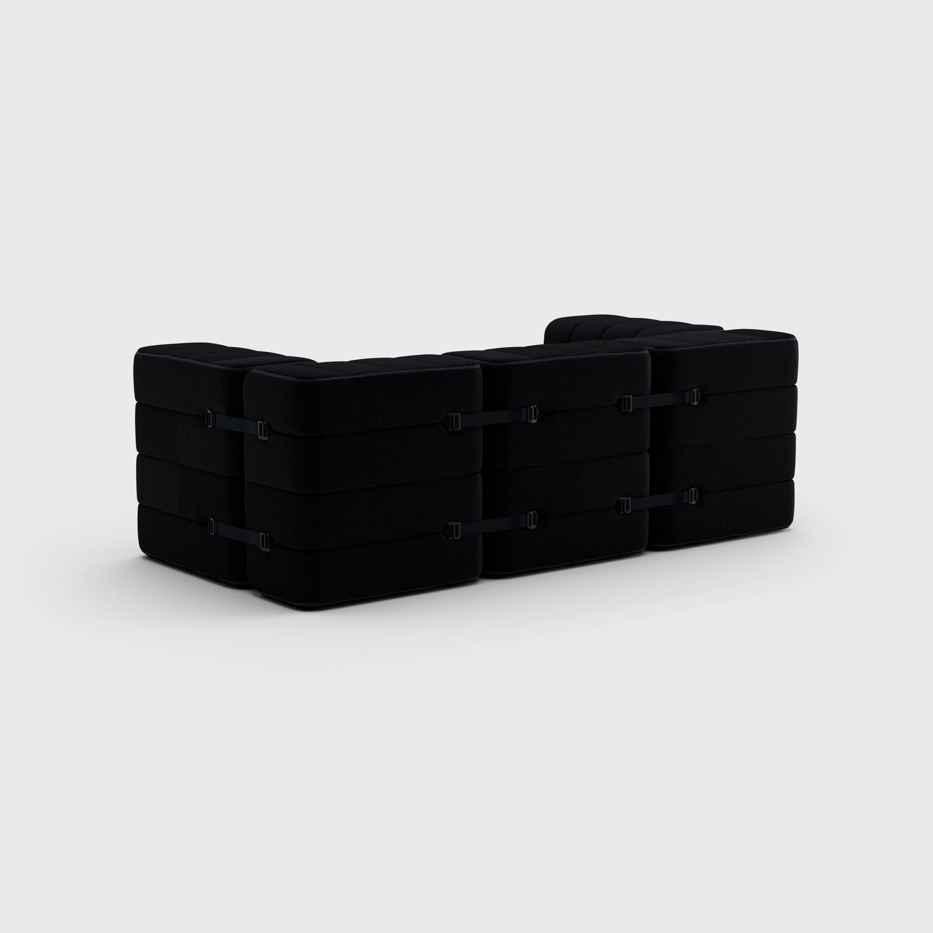 De klassieke zeven. Waarom zou je van een modulair sofa-systeem geen klassieke bank maken? Een echt compacte, gezellige bank met volle armleuningen. En waarom zou je die compacte, gezellige bank niet kunnen veranderen in een kleine hoekbank,