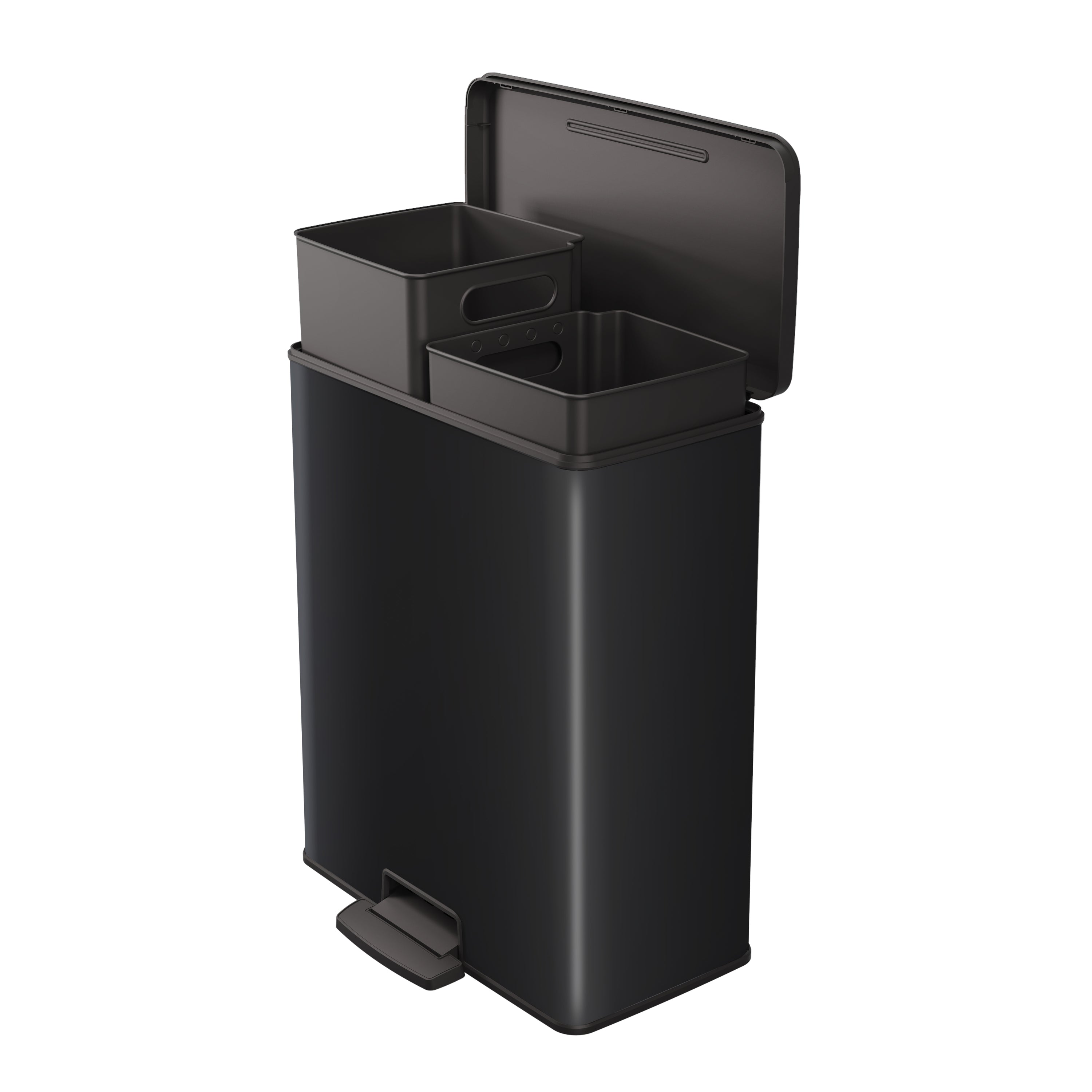 Beschikbaar in een brede range aan maten en vormen is er voor elke gezinsgrootte en persoonlijke smaak wel iets. Deze rechthoekige prullenbak is een comfortabel recycling systeem. Het heeft twee binnenemmers met elk een inhoud van 26 liter. Daarnaast kan de bak ook als 65L afvalbak dienen wanneer de twee binnenemmers verwijderd worden. Naast dat deze pedaalemmer gemaakt is van gerecycled kunststof is hij niet enkel duurzaam, maar ook erg functioneel met zijn soft close mechanisme waardoor het deksel geruisloos sluit en een comfortabel pedaal, waardoor de prullenbak hygienisch en gemakkelijk in gebruik is. Deze prullenbak komt met een garantie van 5 jaar die staat voor kwaliteit en duurzaamheid.