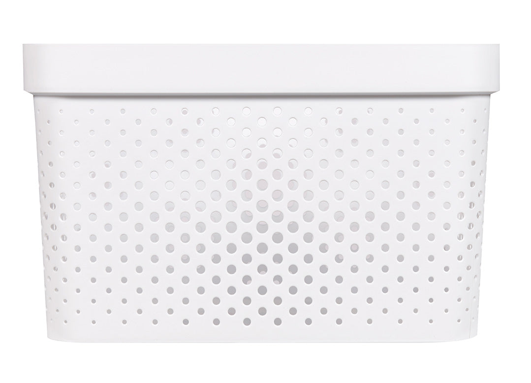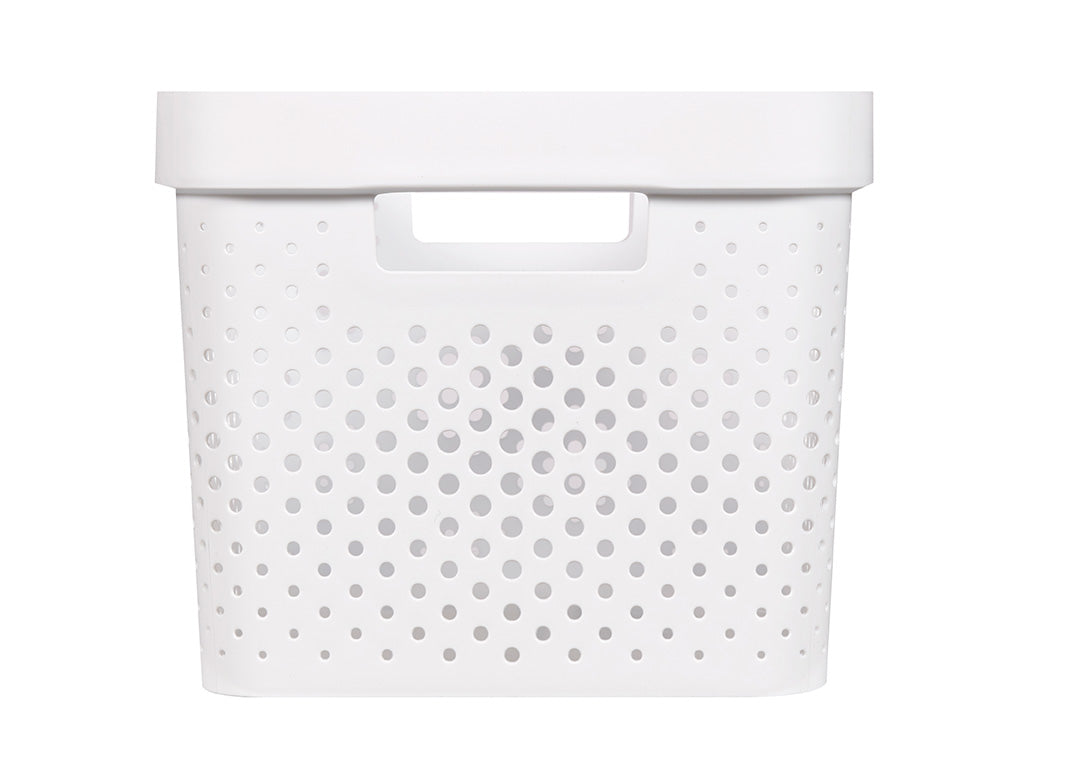 De Curver Infinity Dots Recycled lijn is verkrijgbaar in verschillende kleuren en structuren, geïnspireerd op Scandinavisch design en nu gemaakt van volledig gerecycled kunststof. De boxen hebben comfortabele handgrepen, zijn eenvoudig schoon te maken en zijn makkelijk stapelbaar met deksel (apart verkrijgbaar). Een ware toevoeging aan iedere huiskamer, slaapkamer, speelkamer etc.