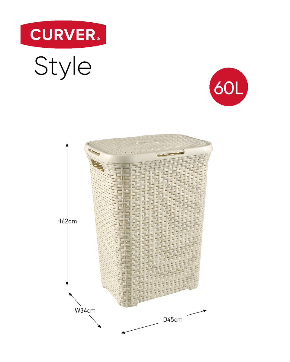 Deze Curver Style wasbox 60L, is gemaakt van een uniek vlecht-design. Het product heeft een natuurlijke uitstraling maar de voordelen van kunststof: Eenvoudig te reinigen, er breken geen stukjes af, bestand tegen vocht. En dankzij de open structuur lucht uw wasgoed voldoende.