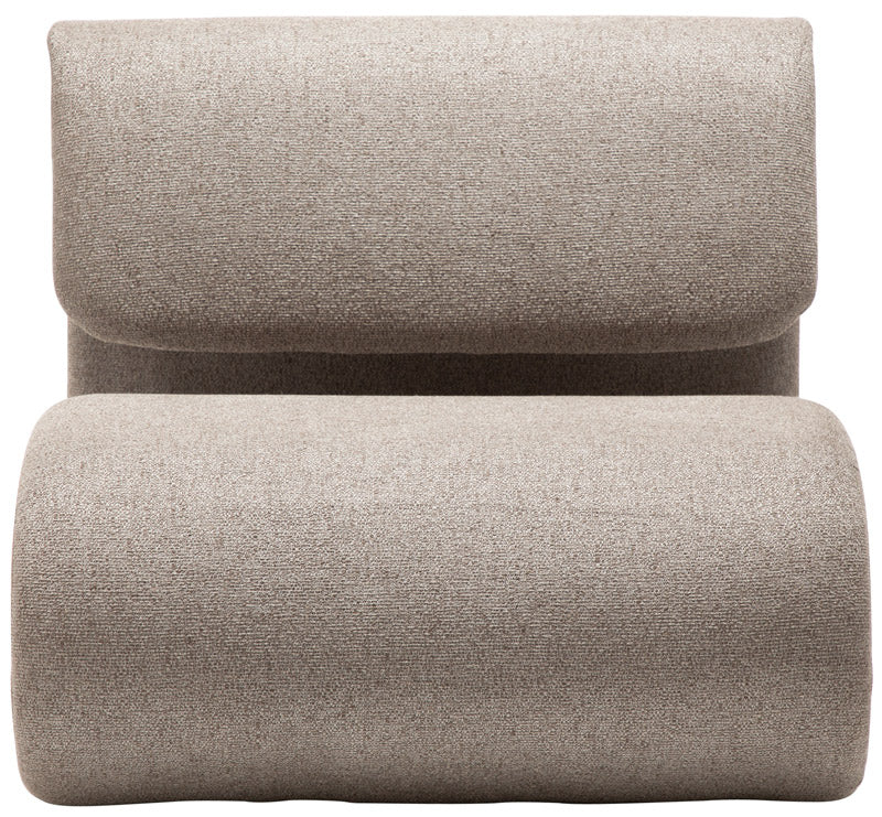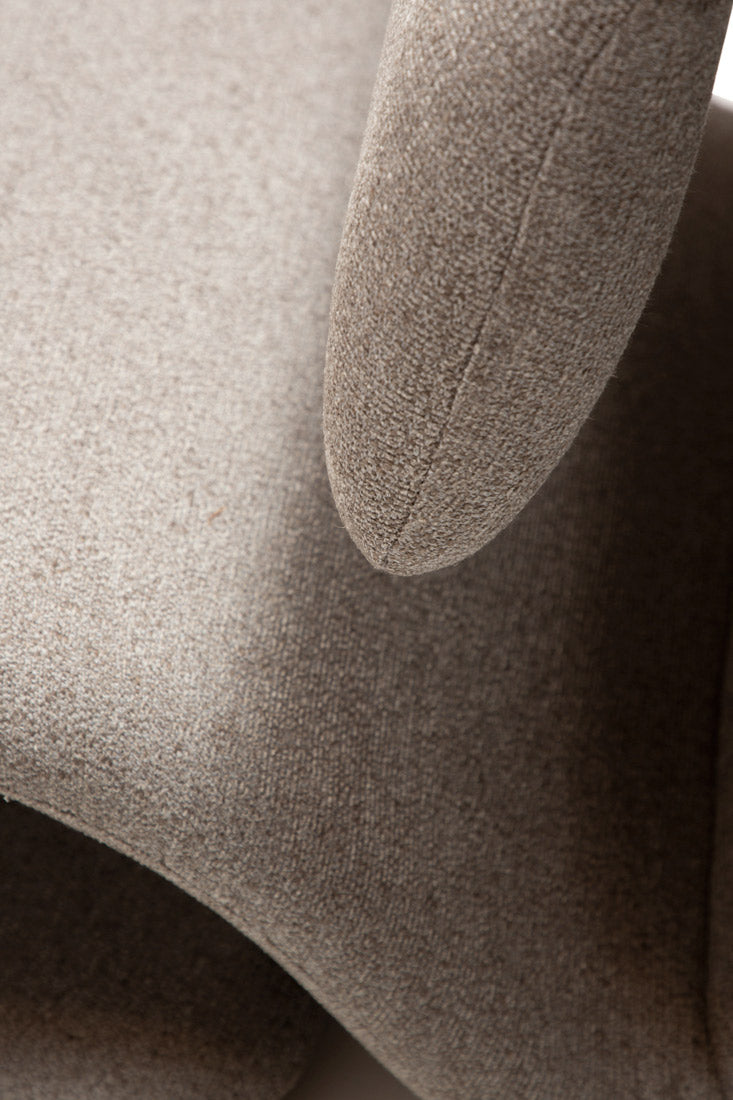 Zandkleurige, unieke loungestoel met bouclé stoffen zitting