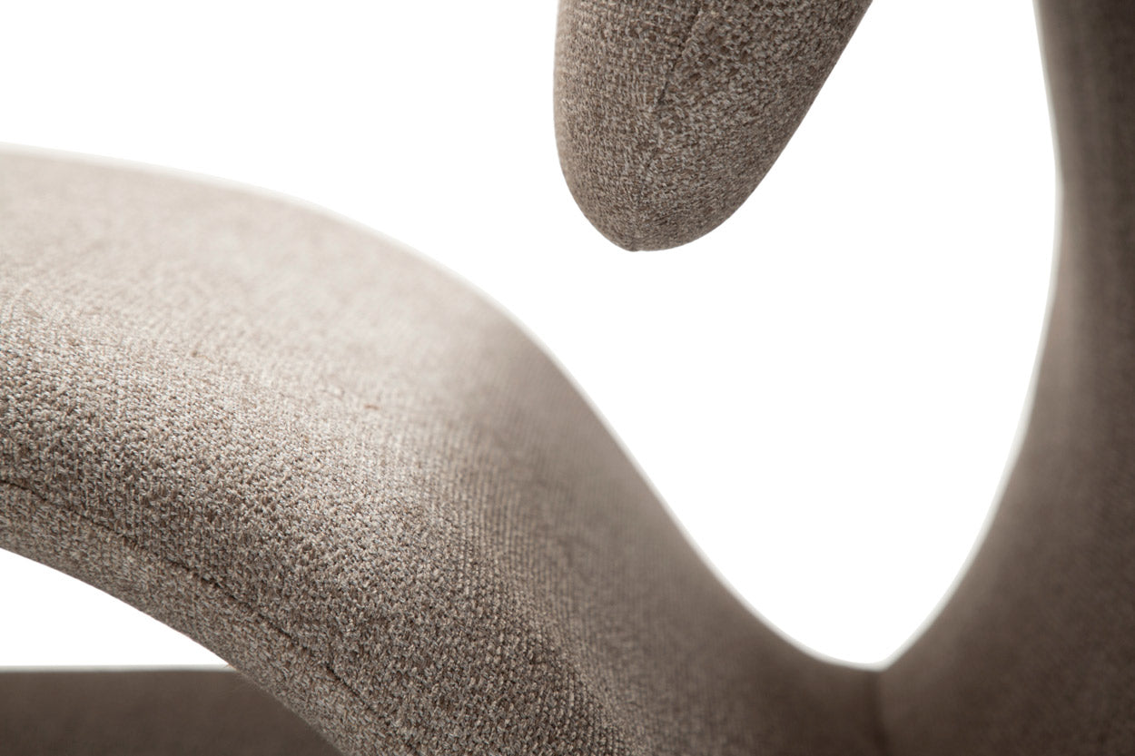 De Dan-Form Dubna loungestoel is zo’n stoel waar je uren naar kunt blijven kijken Het bijzondere design heeft een funky en toch ook stijlvolle look Het gestoffeerde oppervlak van zandkleurige bouclé stof is zacht gebogen en opgevouwen tot een comfortabele fauteuil met unieke uitstraling De pluche bouclé stof geeft de fauteuil een zachte, uitnodigende uitstraling