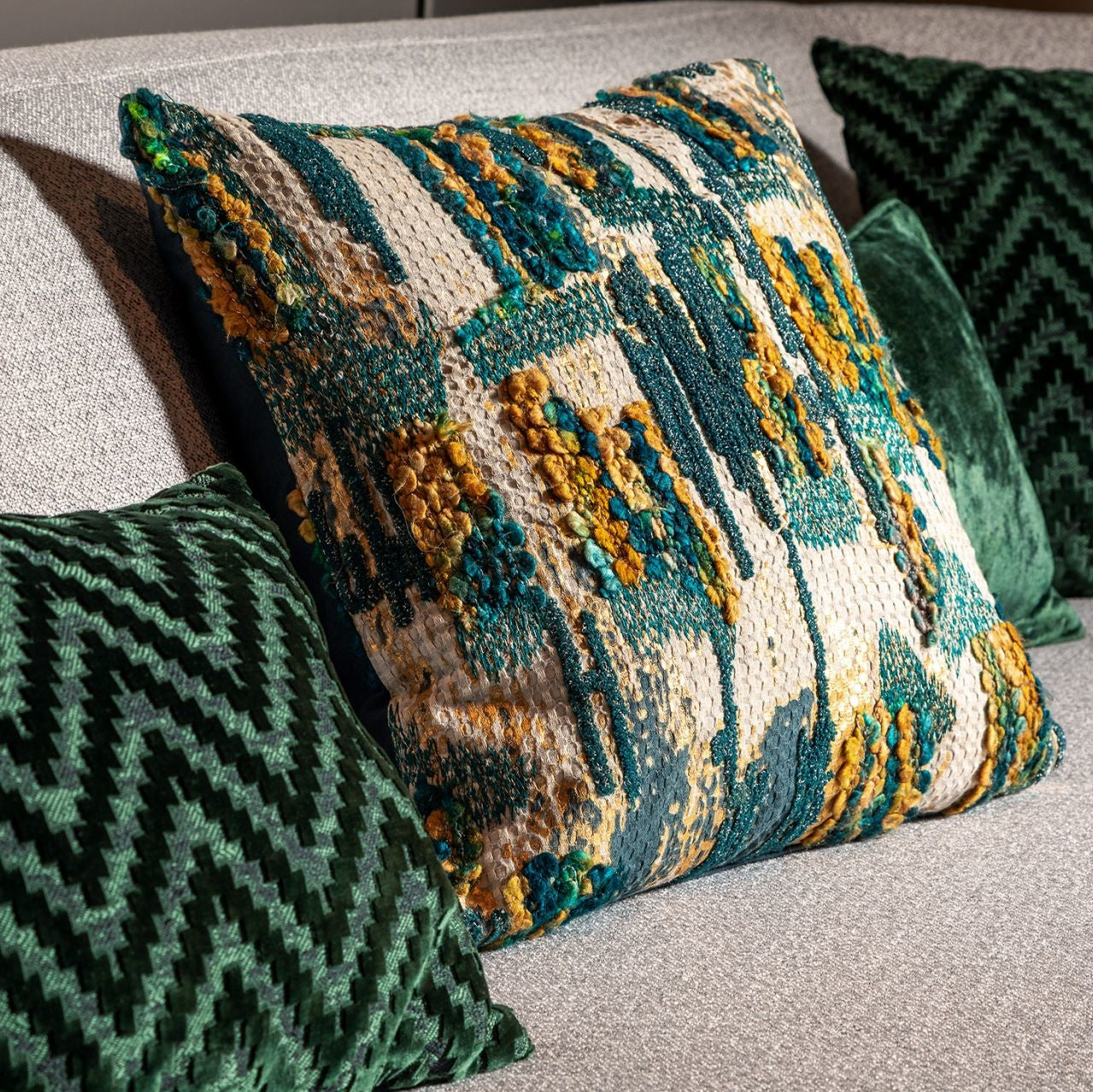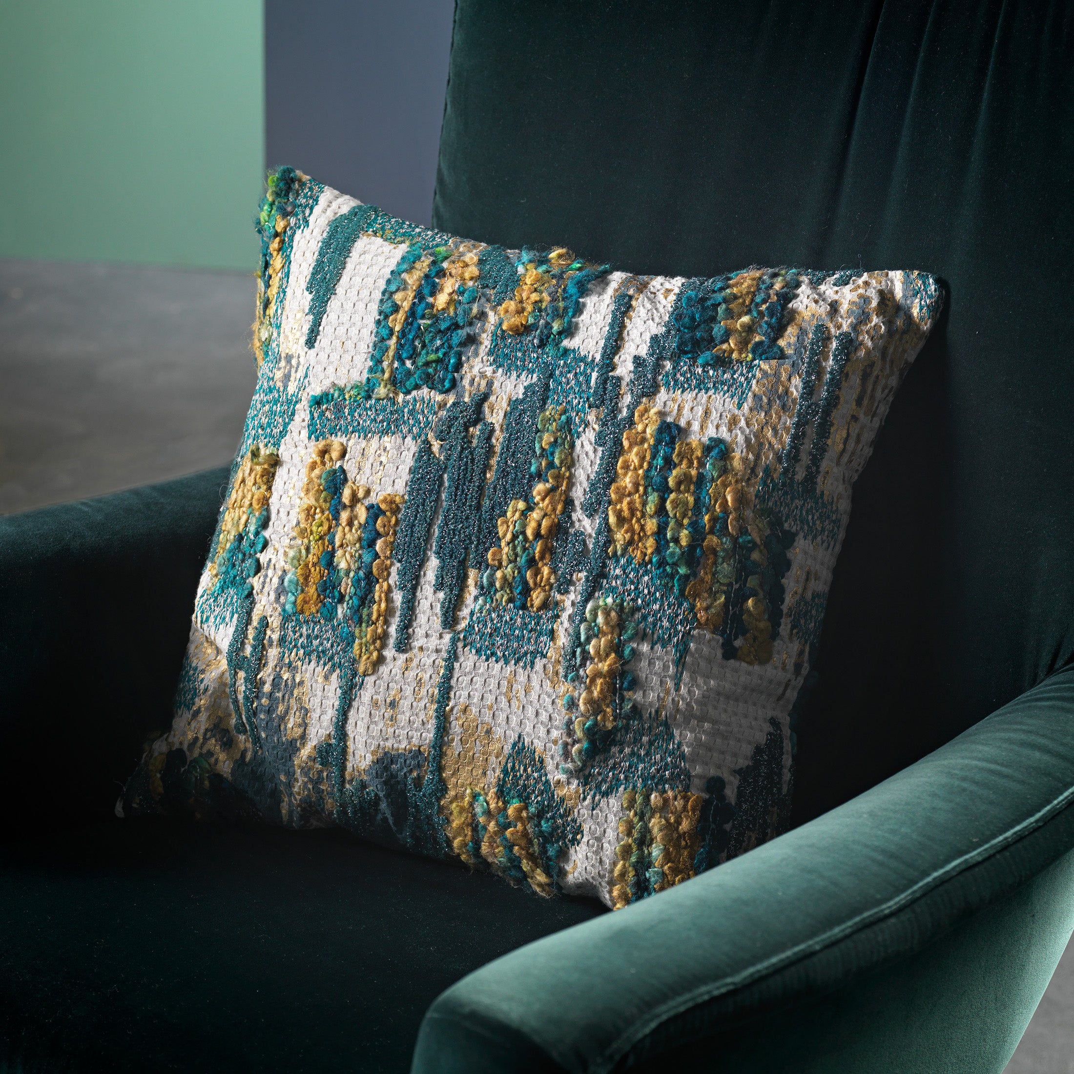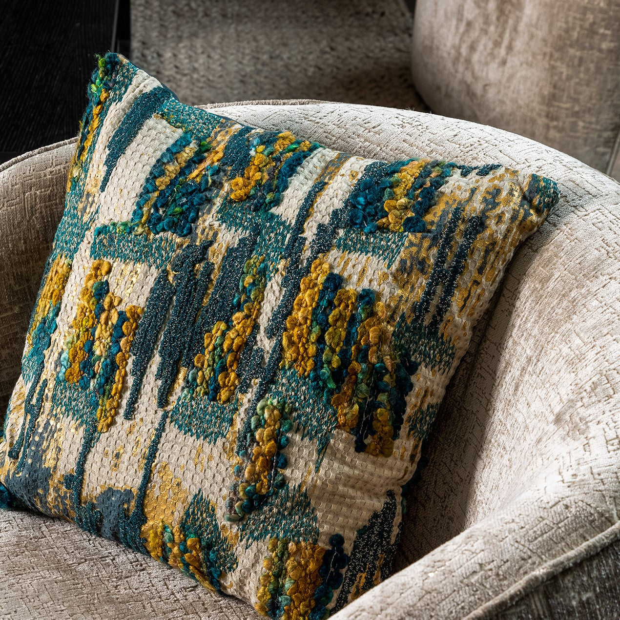 - Luxe kussen met een gemêleerd hand geborduurd patroon.