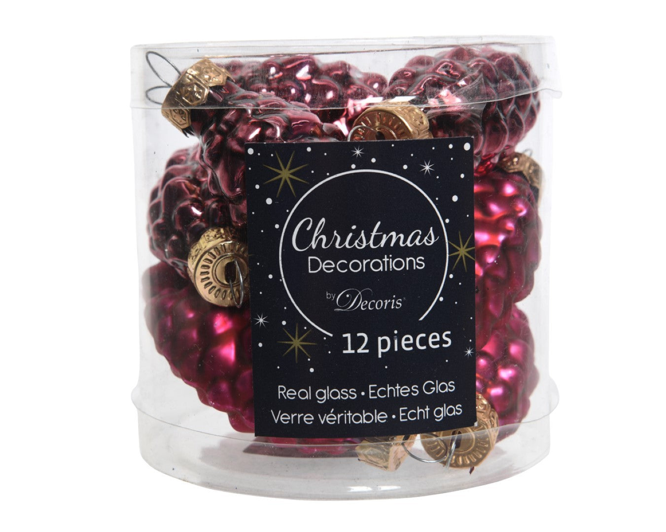 Decoris 2 stuks 12 Glazen dennenappels 40 mm ossenbloed