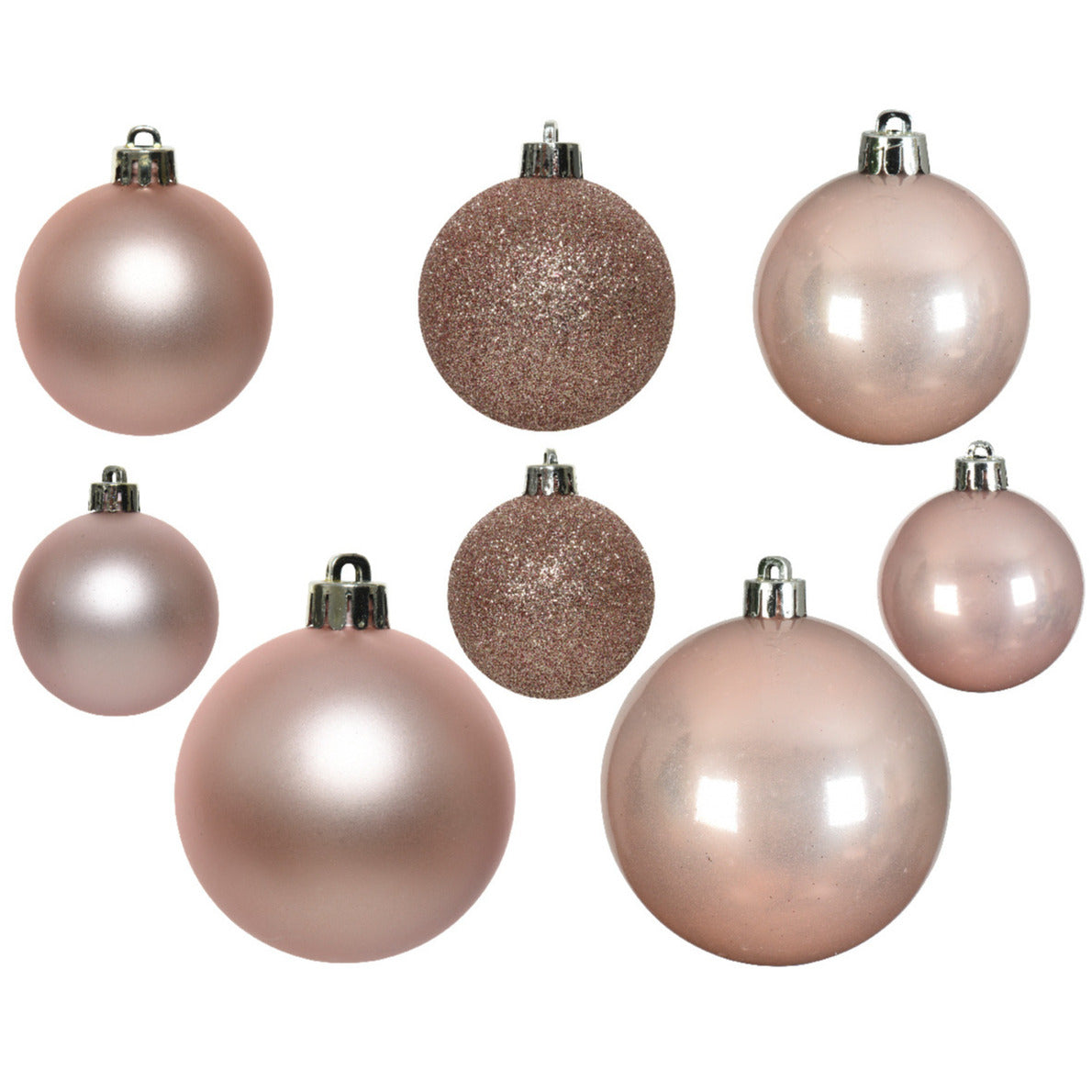 Kerstballen in de kleur lichtroze. Versier je kerstboom met een elegante glans dankzij deze set van kerstballen in schitterend lichtroze. Deze set bevat een gevarieerde mix van onbreekbare kunststof kerstballen in drie verschillende maten: 6 cm, 8 cm en 10 cm, perfect voor een speels en stijlvol effect in je kerstdecoratie. De kerstballen zijn lichtgewicht en veilig in gebruik, ideaal voor gezinnen en huisdieren. Dankzij het kunststof hoef je je geen zorgen te maken over breuk. Alle ballen worden geleverd met ophanglintjes, maar voor extra gemak raden we aan om kerstbalhaakjes (niet inbegrepen) mee te bestellen.