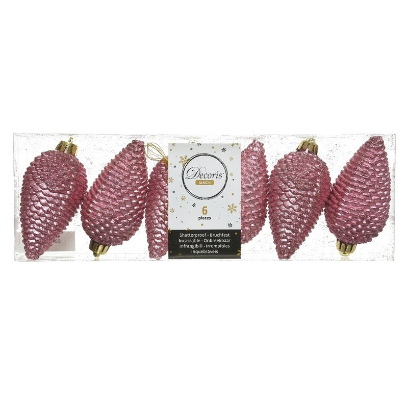 Decoris Kersthangers dennenappels - 6x - oudroze - glitter - 8 cm
