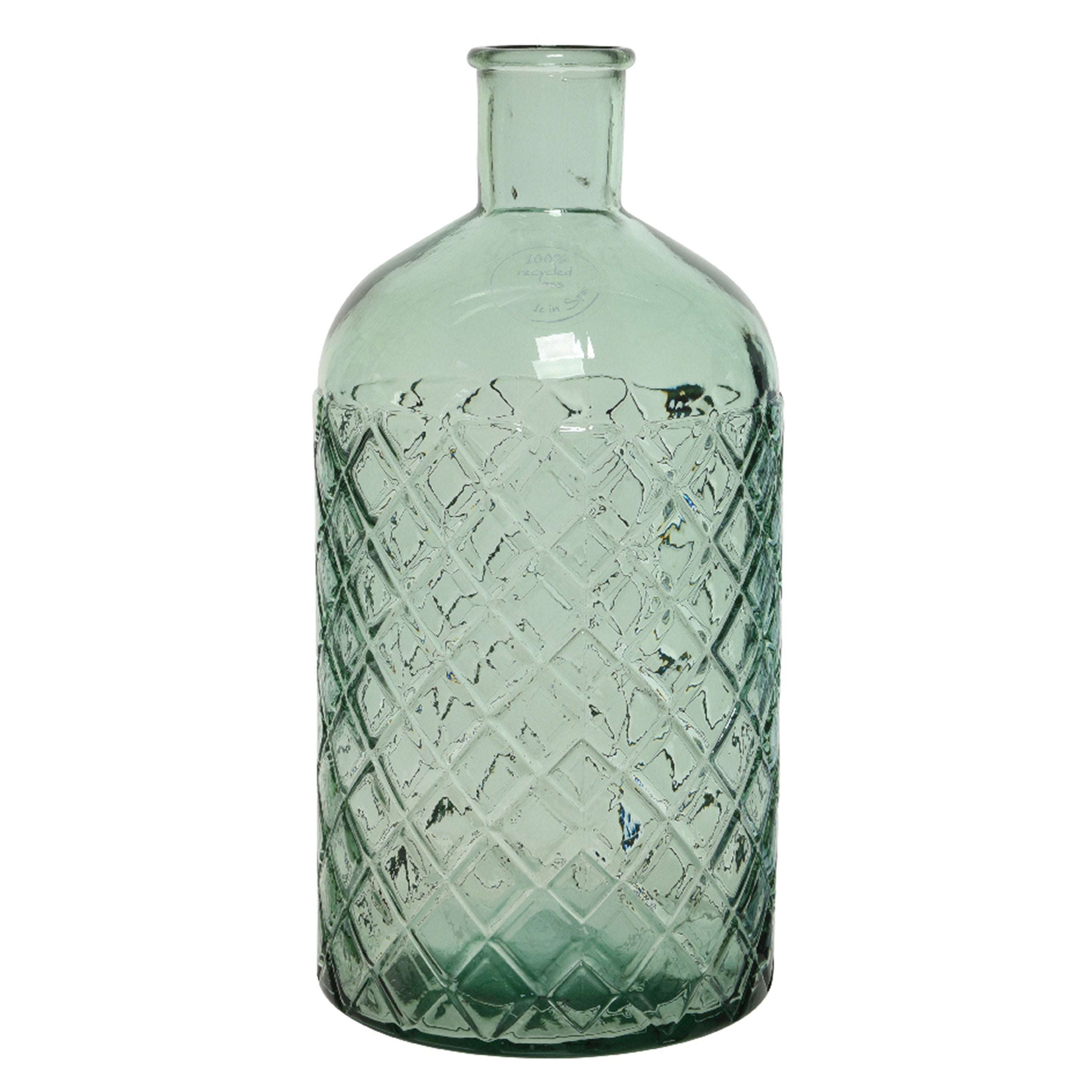 Decoris vaas gemaakt van glas met stijlvol relief. Deze bloemenvaas is geschikt voor o.a. bloemen, kleine boeketten of takken. Diameter: ca. 13,5 cm. Hoogte: ca. 28 cm. Materiaal: 100% gerecycled glas. Afwerking: transparant. Kleur: lichtgroen glas.