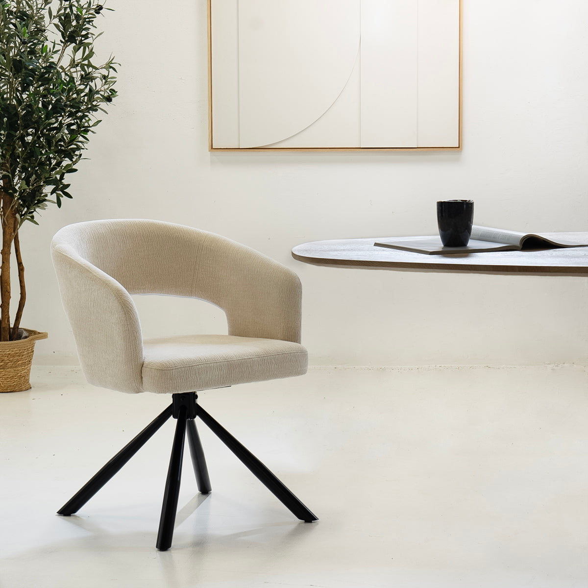 DÉJA Living - Eetkamerstoel Beige Draaibaar - Stof - Elle - Set van 2