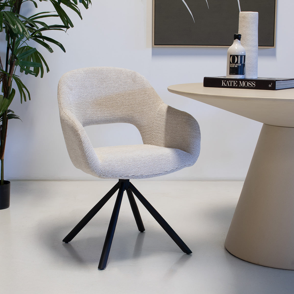 De DÉJA Eetkamerstoel Livia in Beige is een prachtige toevoeging aan je eetkamer. Deze stoel straalt de serene en minimalistische Japandi-stijl uit, die een perfecte balans vindt tussen Japanse eenvoud en Scandinavische functionaliteit. De zitting is bekleed met een zachte, beige stof die niet alleen comfortabel is, maar ook een warme uitstraling geeft aan je interieur. Het metalen frame zorgt voor een stevige basis en een moderne touch. Deze stoel is ideaal voor dagelijks gebruik en biedt een comfortabele zitervaring tijdens lange diners.