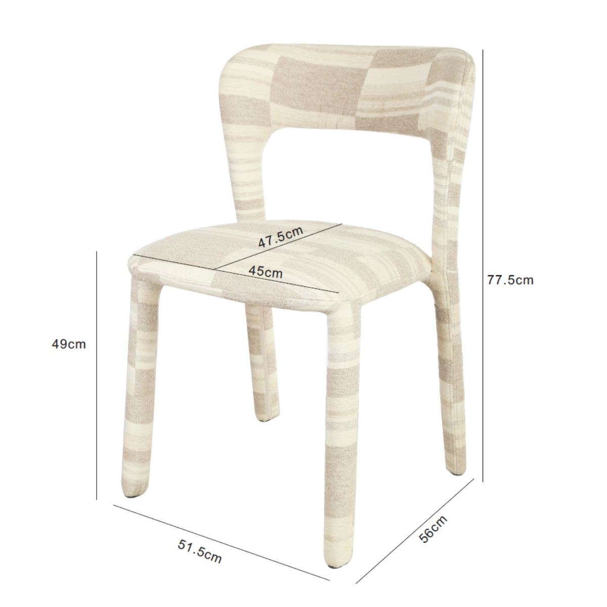 - De zithoogte is 49 cm.