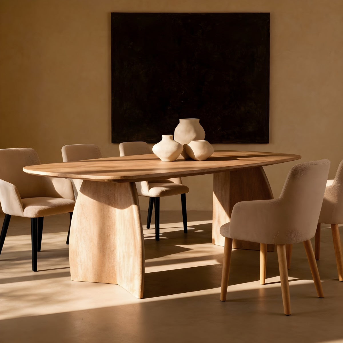 Materiaal: Deze eettafel is volledig gemaakt van mangohout, een materiaal dat bekend staat om zijn duurzaamheid en robuuste karakter. Mangohout is een milieuvriendelijke keuze, omdat het afkomstig is van snelgroeiende bomen, waardoor het een duurzame optie is voor je interieur.