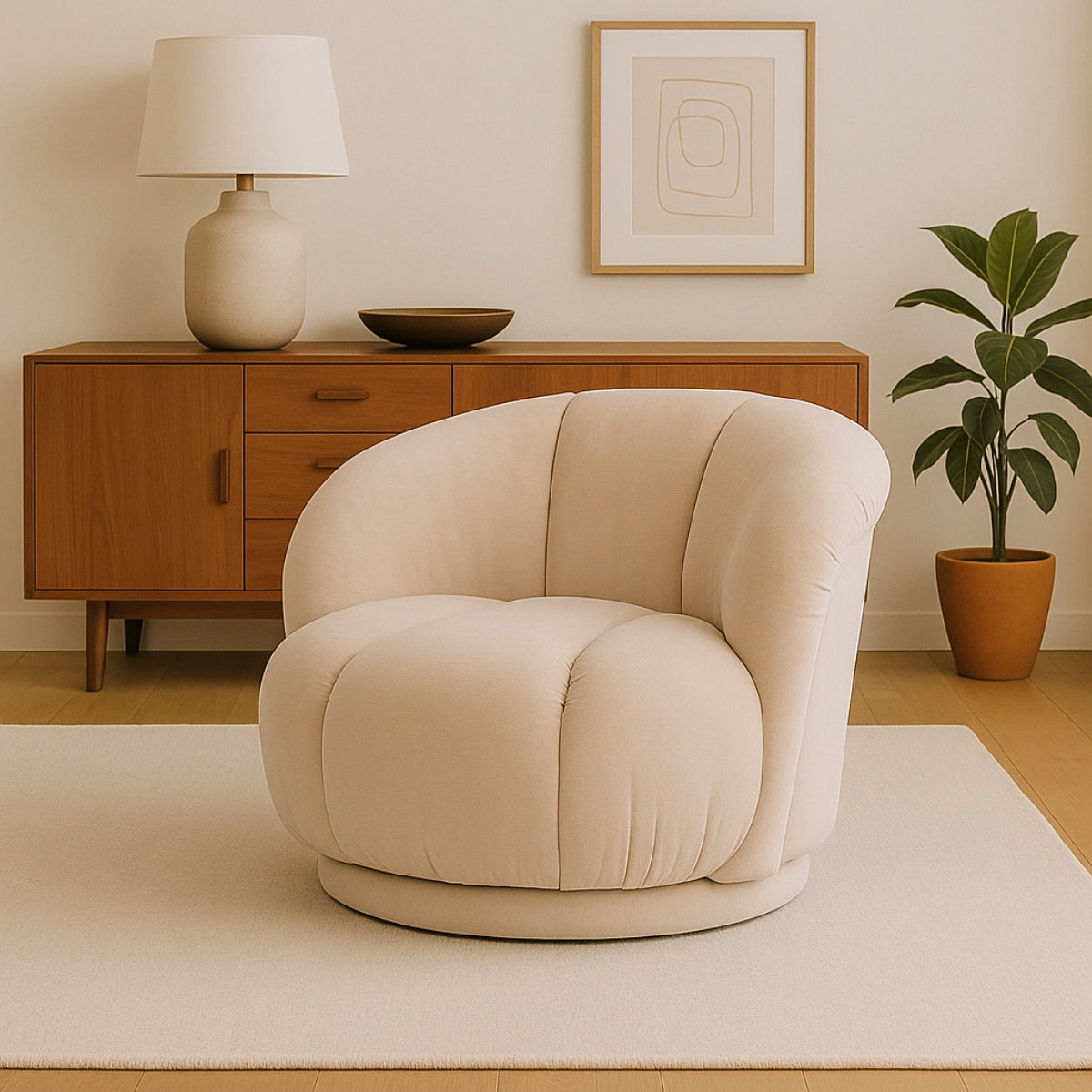 Ontdek de elegantie van de DÉJA Draaifauteuil Arby in een prachtige beige kleur. Deze fauteuil straalt de charme van de Japandi stijl uit en is vervaardigd uit hoogwaardige stof en metaal. De beige tint voegt een warme en uitnodigende sfeer toe aan elke ruimte. De fauteuil is ontworpen voor comfort en stijl, perfect voor zowel ontspanning als een stijlvolle toevoeging aan je interieur.