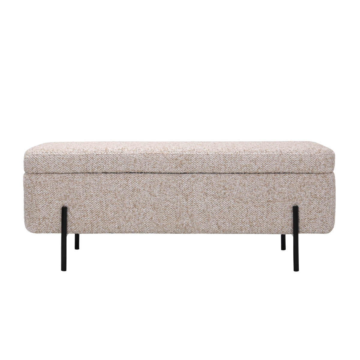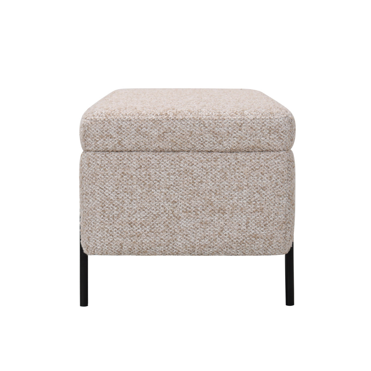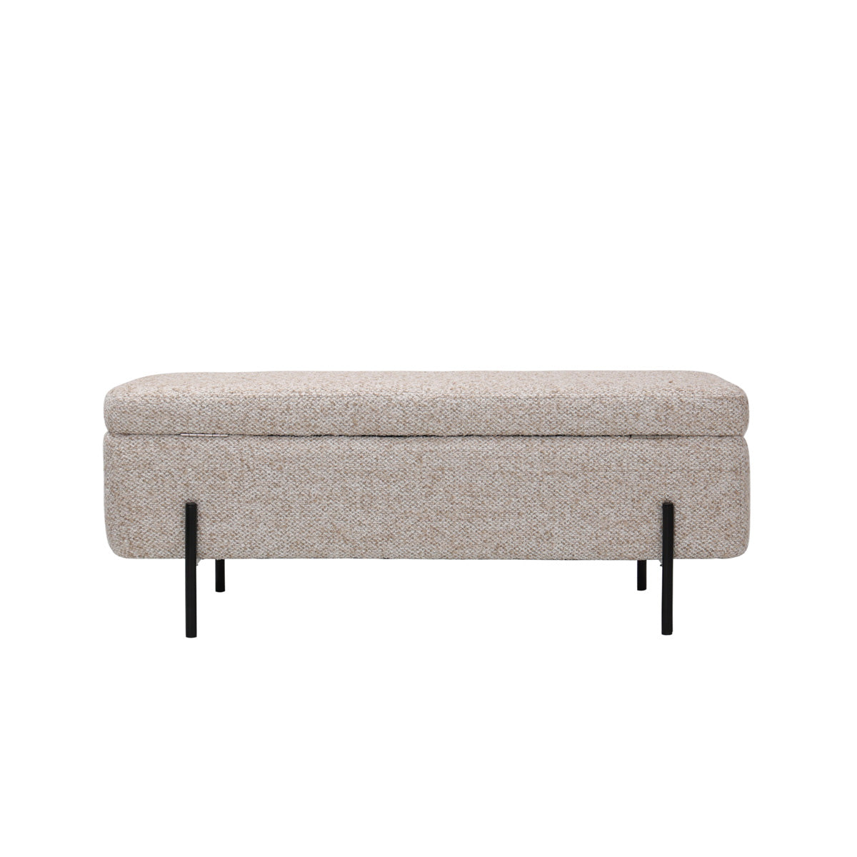 Materiaal: De opbergbank is vervaardigd uit stof, wat zorgt voor een zachte en comfortabele zitervaring. Het gebruik van stof maakt de bank niet alleen stijlvol, maar ook duurzaam en gemakkelijk te onderhouden.