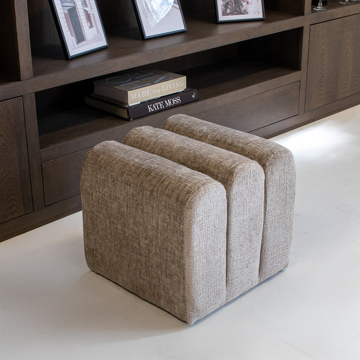 DÉJA Living - Poef Stof Taupe - 45x45x40cm - Zithoogte 40cm - Lavia