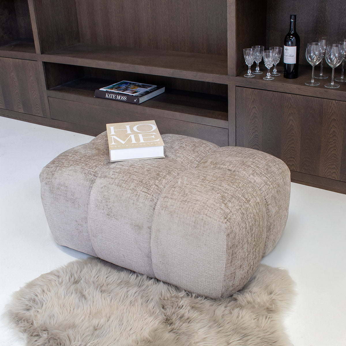 DÉJA Living - Poef Stof Taupe - 90x64x44cm - Zithoogte 44cm - Maël