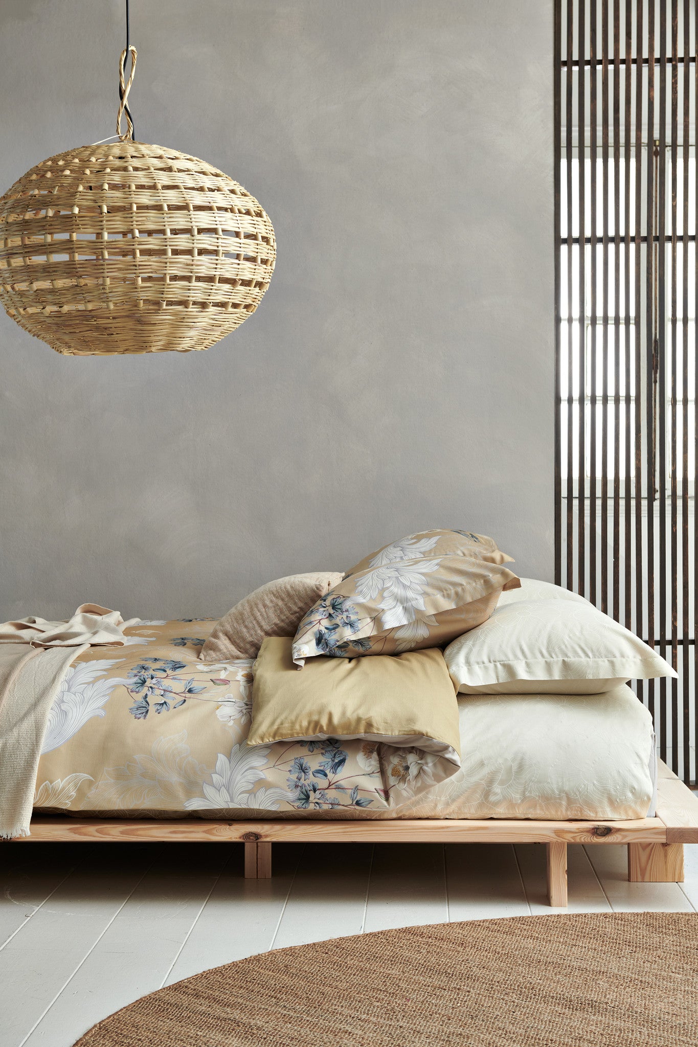 Met het Line Flower dekbedhoes hou je de slaapkamer rustig in een warme kleur. Over het hele overtrek en de kussenslopen zijn subtiele witte bloemen getekend, tevens verloopt de gele kleur heel langzaam van licht naar iets donkerder. Maat 200 x 200/220 cm (2-persoons dekbedovertrek met 2 kussenslopen) Kleur Beach-014 Kwaliteit 100% satijnkatoen Kussensloop voorzien van Oxford rand Print Bovenzijde: Print Line Flower Onderzijde: Print Line Flower Instopstrook Ja (ruime flessenhals) Wasvoorschriften Machine wasbaar op 40 graden (donkere kleuren) of 60 graden (lichte kleuren) Drogen op lage temperatuur Heet strijken