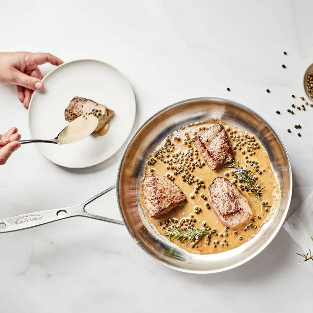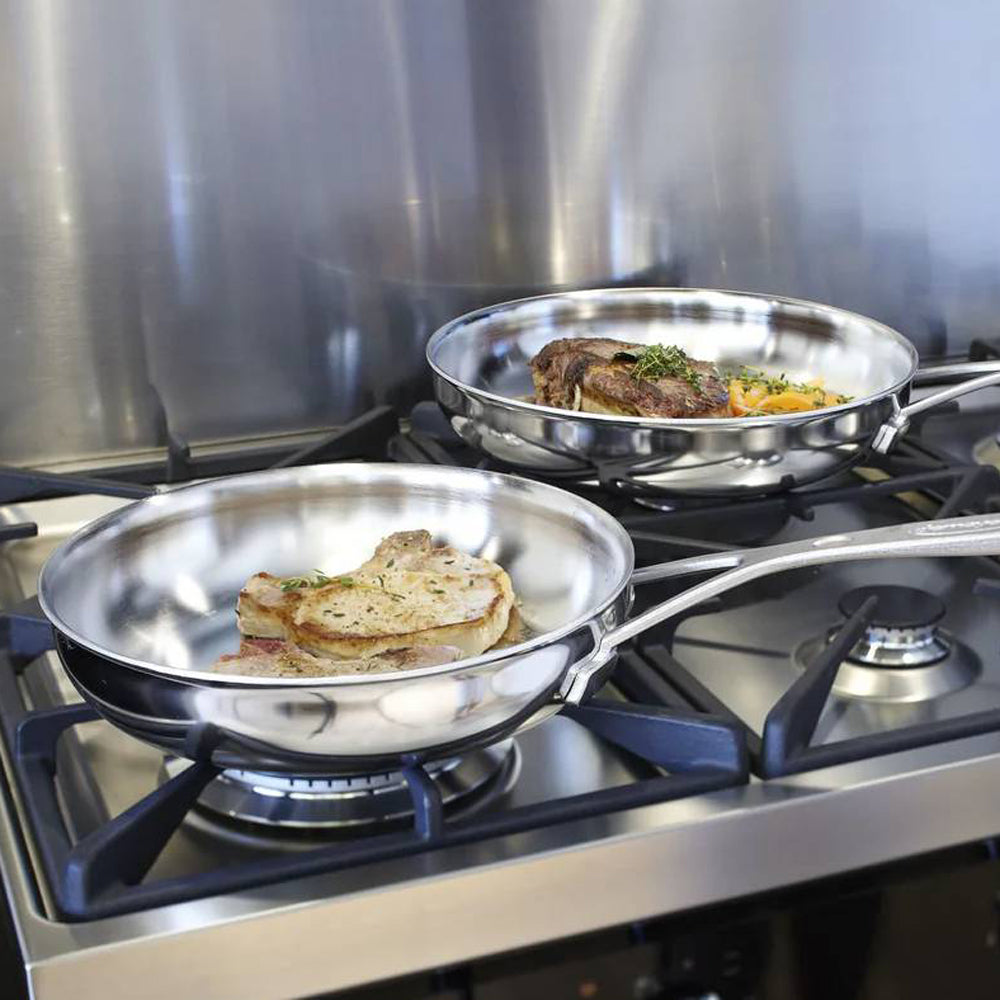 De pannen zijn opgebouwd uit vijf lagen, waaronder aluminium, waardoor de warmte gelijkmatig wordt verdeeld. Dit zorgt ervoor dat je ingrediënten gelijkmatig garen, zodat je altijd een mooi resultaat krijgt zonder hotspots.