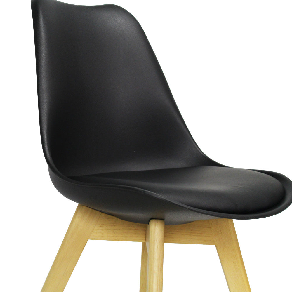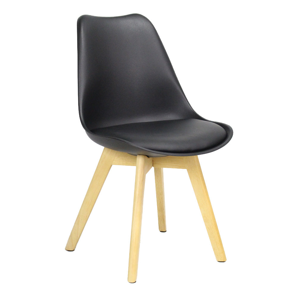 Moderne en frisse eetkamer kuipstoel in zeven kleuren vanuit voorraad leverbaar! Mooie beuken houten poten met een stevige PP kuip en een bijpassend PU kussentje.