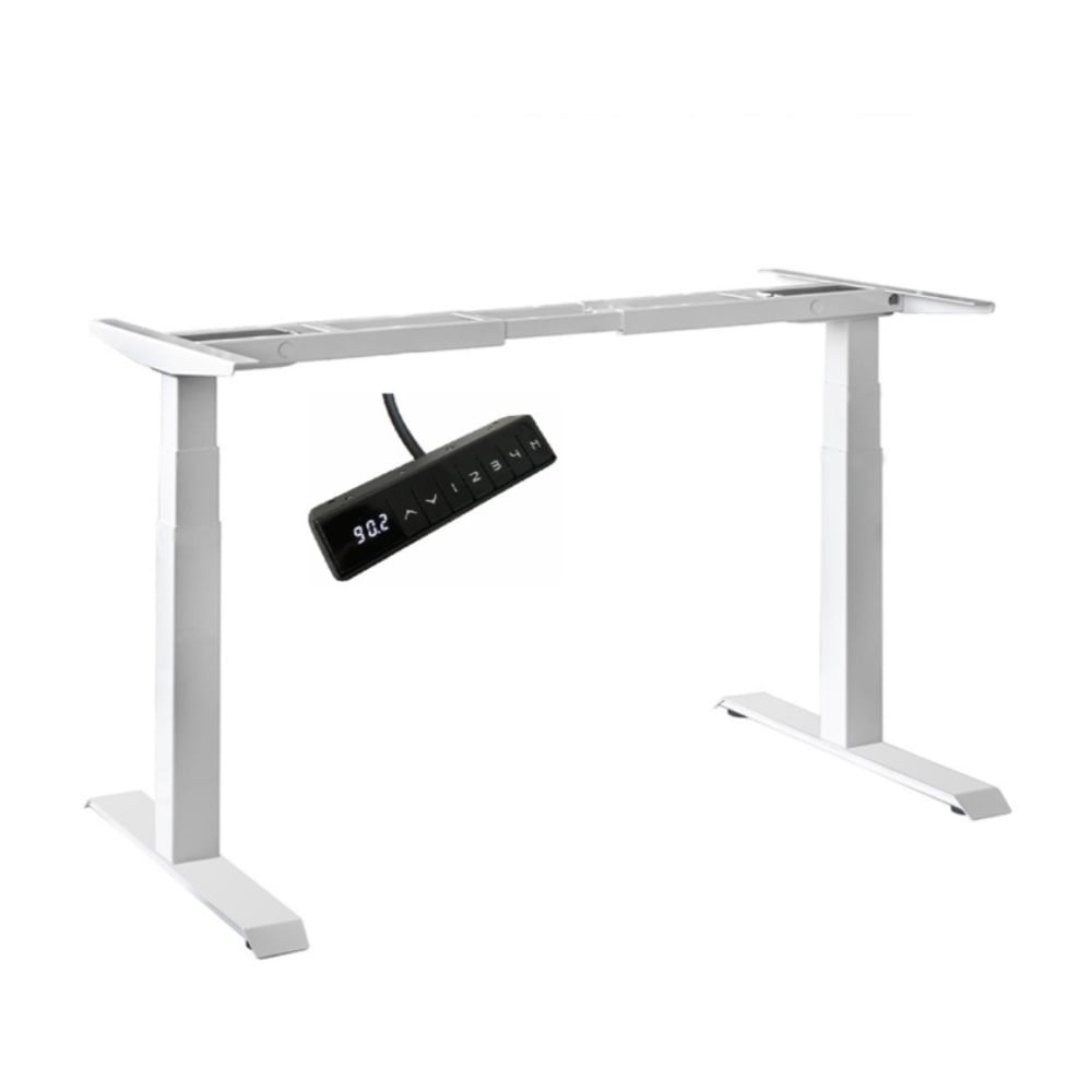Dit professionele zit-sta bureau frame is elektrische verstelbaar in hoogte, zodat je ergonomisch kunt werken volgens de Nederlandse ARBO regels. Zowel thuis als op kantoor. Het frame heeft veel verschillende functies, waaronder de memory functie van de bediening. Dit is functie waarbij je verschillende standen kunt instellen en door een getal van 1 t/m 4 in te drukken wordt deze stand van het bureau onthouden waardoor je de volgende keer alleen op het juiste cijfer hoeft te drukken om het bureau op de gewenste hoogte in te stellen.