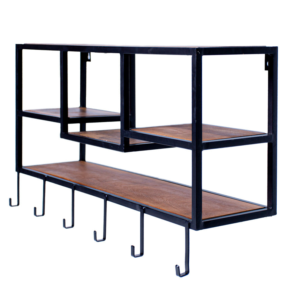 Dimehouse Industrieel wandrek Jessy mangohout metaal 80x44 cm