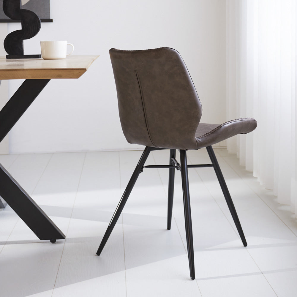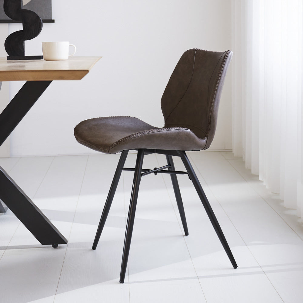 Op de rug is een mooi baseball patroon gestikt en langs de buitenkant heeft de eetkamerstoel een super stoere dubbele stiknaad! Gewoon een mooie onderscheidende kuip. Deze eetkamerstoel wordt vaak als te klein ervaren door mensen met een lang en groot postuur vanwege de afmetingen van de kuip en de zithoogte.