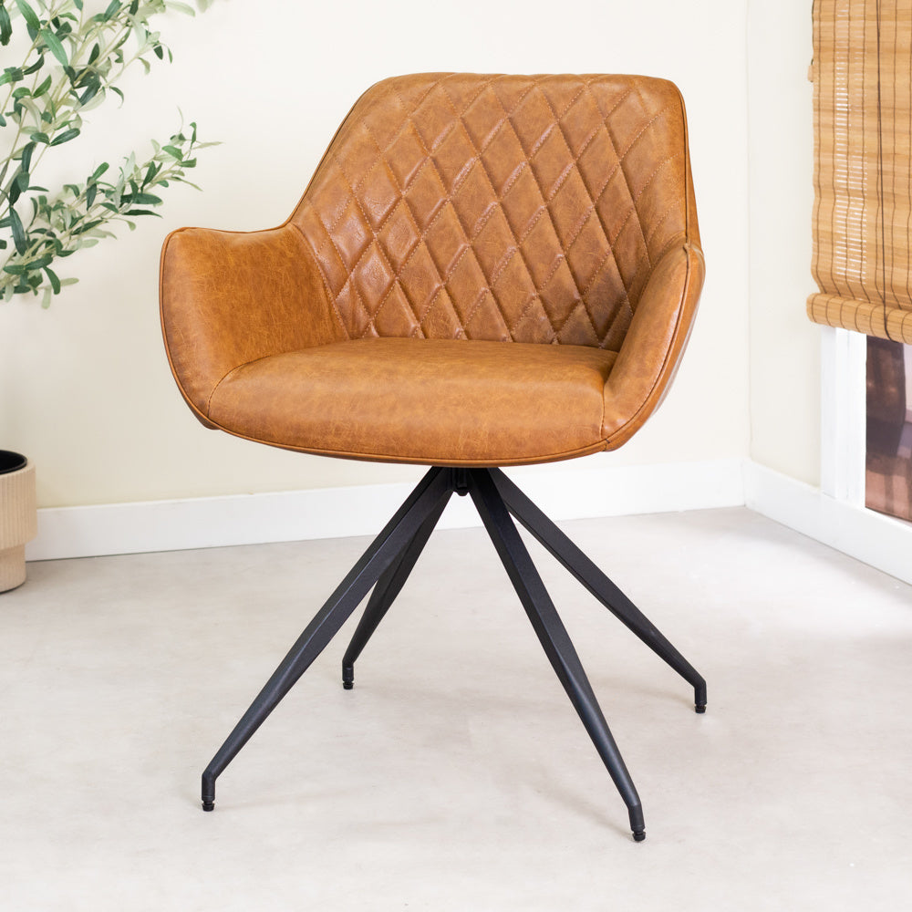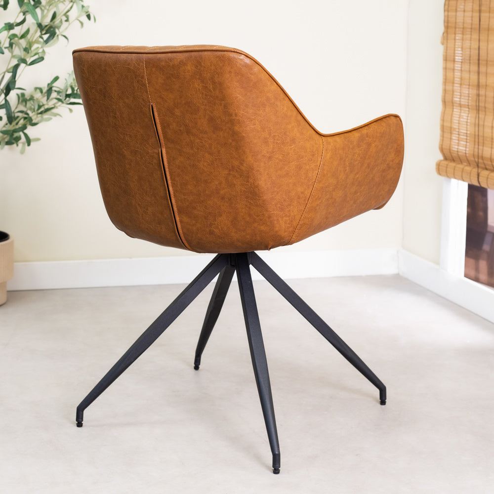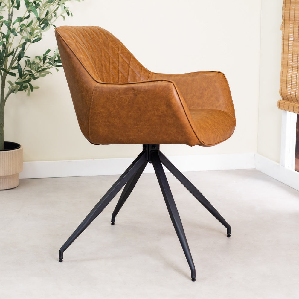 Industriële eetkamerstoel Gian is een echte eyecatcher. Dankzij de combinatie van de stiknaden en het design krijgt de stoel een karakteristieke uitstraling. Eetkamerstoel Gian komt goed tot recht in een industriële setting.