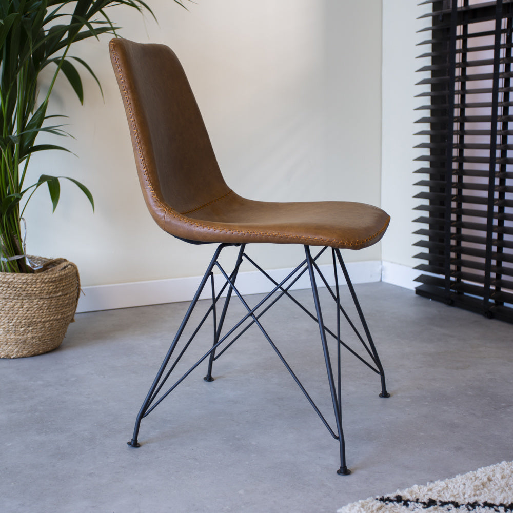 De kuipstoel Viano is een oersterk en stoer model! Op deze kuipstoelen kun je uren zitten en lekker tafelen met het hele gezin. De industriële eetkamerstoel Viano heeft een mooi zwart gepoedercoat frame met een kunstlederen bekleding.