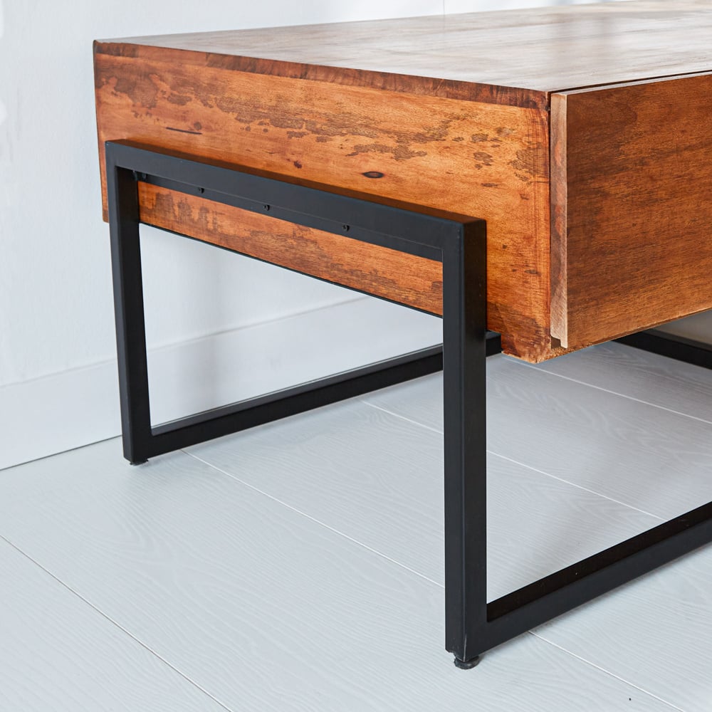 Materiaal frame Het frame van tv-meubel Emma is gemaakt van zwart metaal. De combinatie van mangohout en zwart metaal is perfect voor ieder interieur. De handvatten van de lades zijn ook gemaakt van metaal en dragen ook bij aan de industriële stijl.