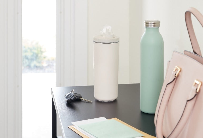 Dispenser voor Vochtige Doekjes, Smal, Kunststof, Beige/Grijs - iDesign | iD Clean Met deze dispenser voor vochtige doekjes heb jij altijd je vochtige doekjes bij de hand! De dispenser is gemaakt van kunststof, heeft een luchtdichte afsluiting en kan door zijn smalle ontwerp makkelijk onderweg meegenomen worden. De dispenser past namelijk ook precies in de cup holder van je auto, handig! Draai de deksel van de dispenser om deze te sluiten. De dispenser is gemakkelijk bij te vullen door de dop los te draaien. Combineer deze dispenser voor vochtige doekjes met de andere artikelen uit de iD Clean serie van iDesign die dezelfde kleur dragen om een fantastische opgeruimde setting te creeren in elke gewenste ruimte én onderweg! Deze dispenser voor vochtige doekjes is ook verkrijgbaar in de kleur Zwart/Grijs. Pluspunten