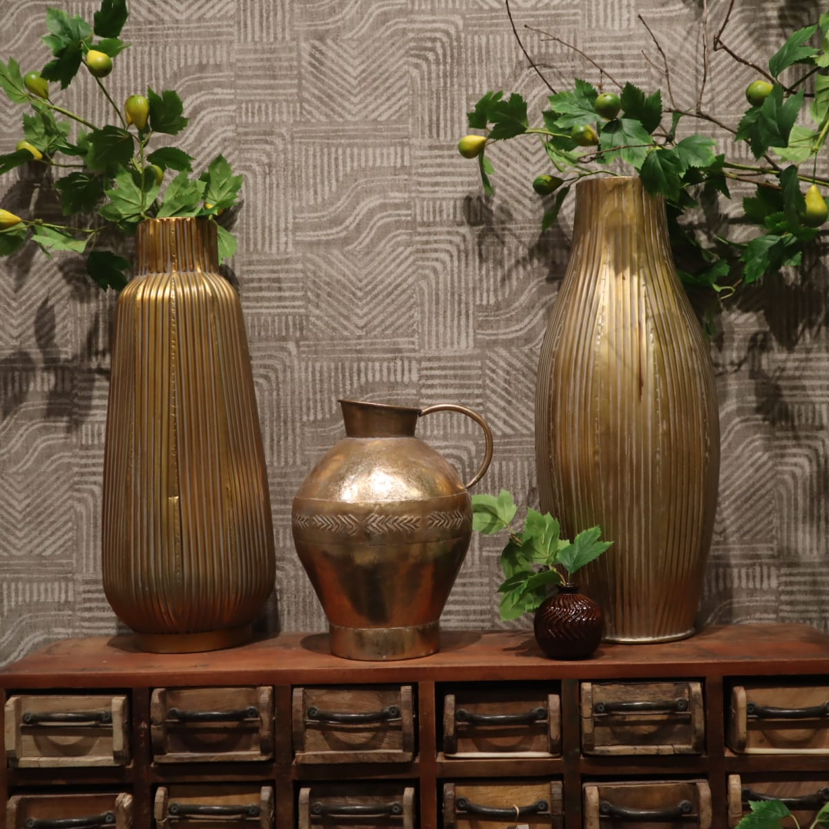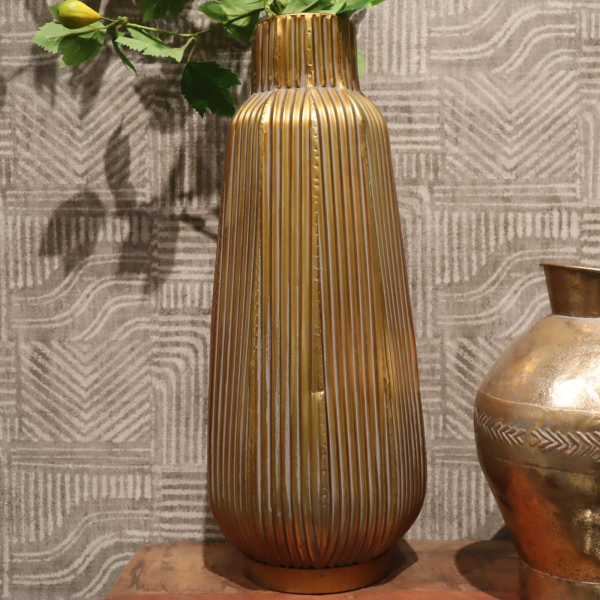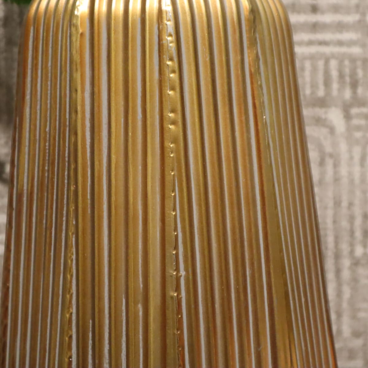 Laat uw interieur stralen met deze gouden metalen vaas. Het tijdloze ontwerp en de hoogwaardige afwerking maken deze vaas een unieke toevoeging aan uw decor. Plaats het op een prominente plaats en vul het met verse bloemen om een warme en uitnodigende sfeer te creëren. Deze vaas zal zeker de aandacht trekken en een gespreksonderwerp zijn voor uw gasten. Voeg vandaag nog deze prachtige vaas toe aan uw collectie.