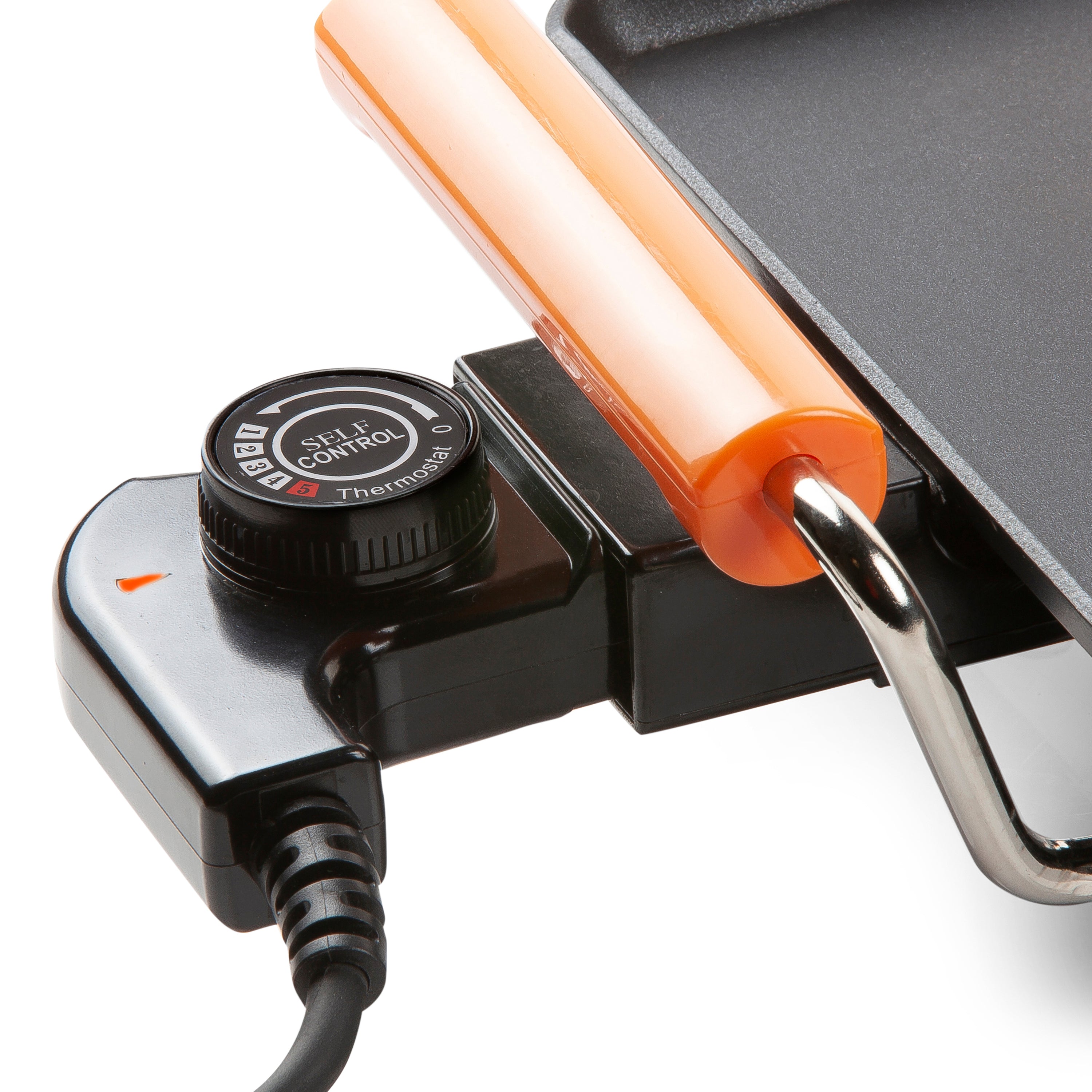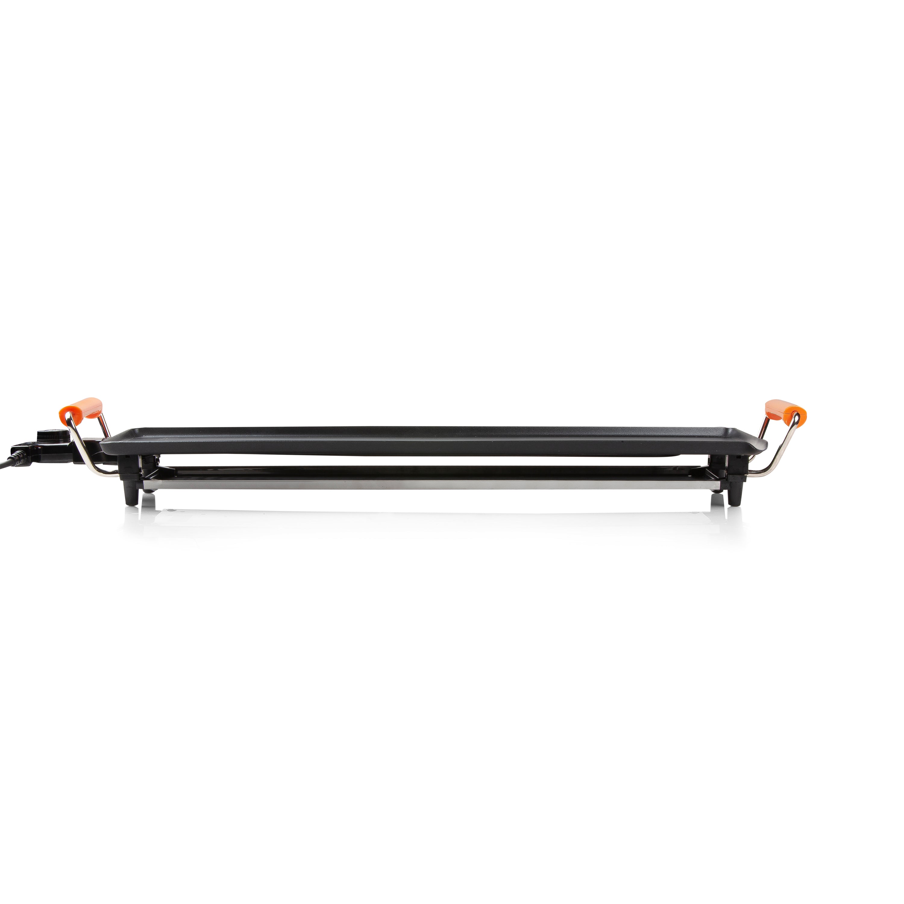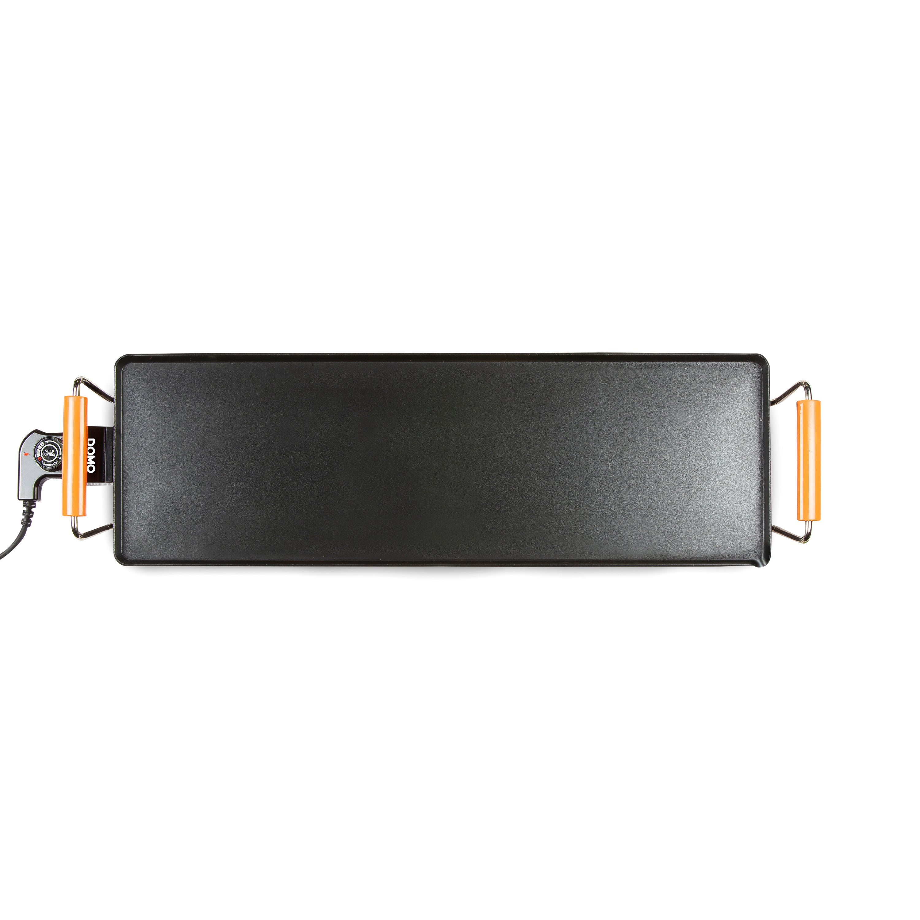 Het ruime bakoppervlak zorgt ervoor dat er ruimte genoeg is voor 6 tot 8 personen tegelijkertijd. Maak heerlijke groenten of vlees creaties en geniet vooral van een gezellig en heerlijk avondje met elkaar. Deze teppanyaki plaat is makkelijk te verplaatsen, door de Cool Touch handvatten. Fijn, want hierdoor verbrand je je handen niet. De plaat beschikt over een thermostaat op de stekker waarmee je de gewenste temperatuur instelt. Deze stekker met thermostaat kan je na gebruik loskoppelen, zodat je hem makkelijk met een doekje kunt afnemen. De teppanyaki plaat maak je na gebruik ook heel eenvoudig schoon. De antiaanbaklaag zorgt ervoor dat je hem met een vochtige doek zo weer schoon krijgt.