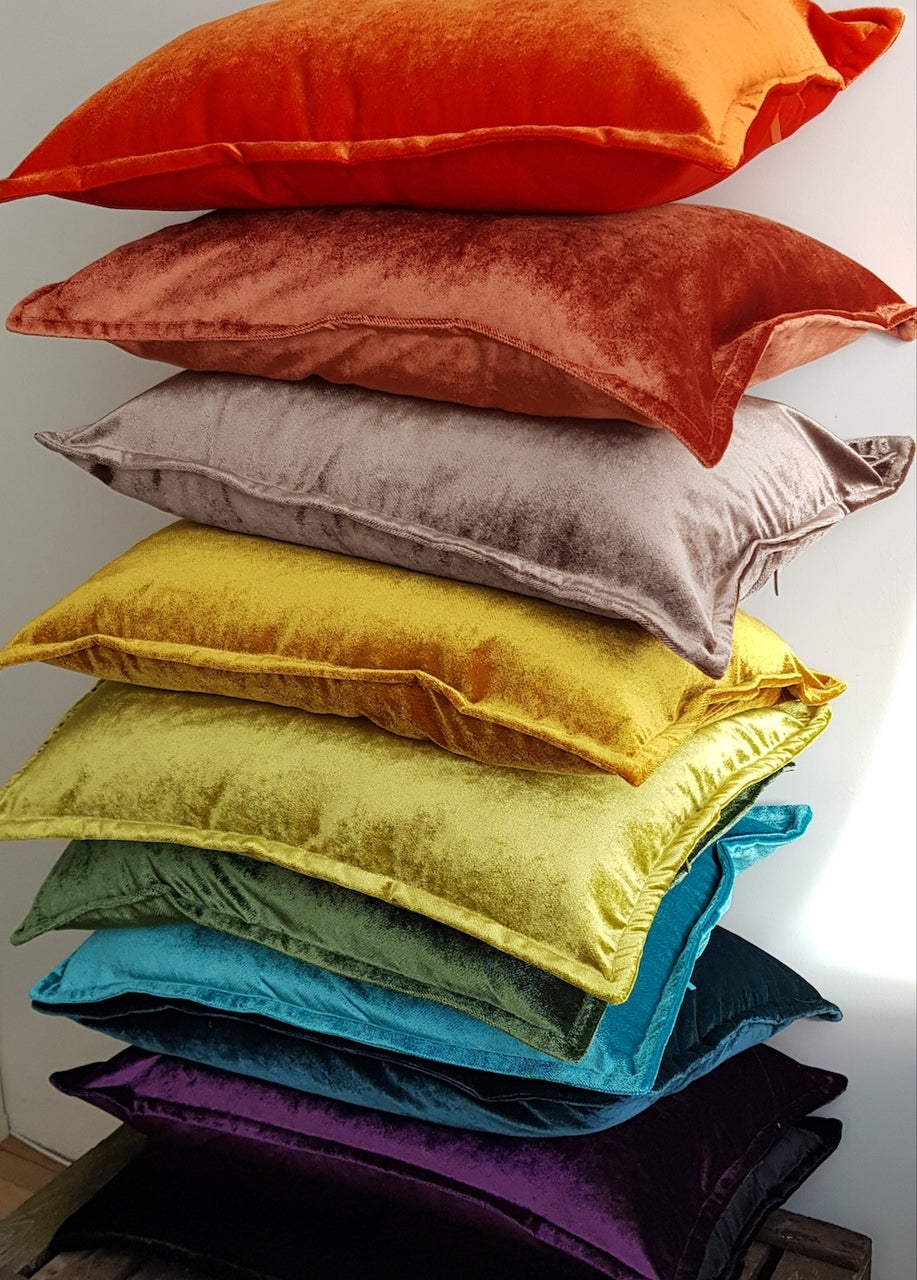 Deze luxe kussenhoezen van hoogwaardig fluweel stralen pure glamour uit. Prachtige diepe kleuren en een beetje glans, deze kussens staan heel chique op je bank! De stiknaad rondom geeft het kussen net dat beetje extra. Combineer de verschillende kleuren en maten en geef kleur en glans aan je bank. Wij zijn fan!