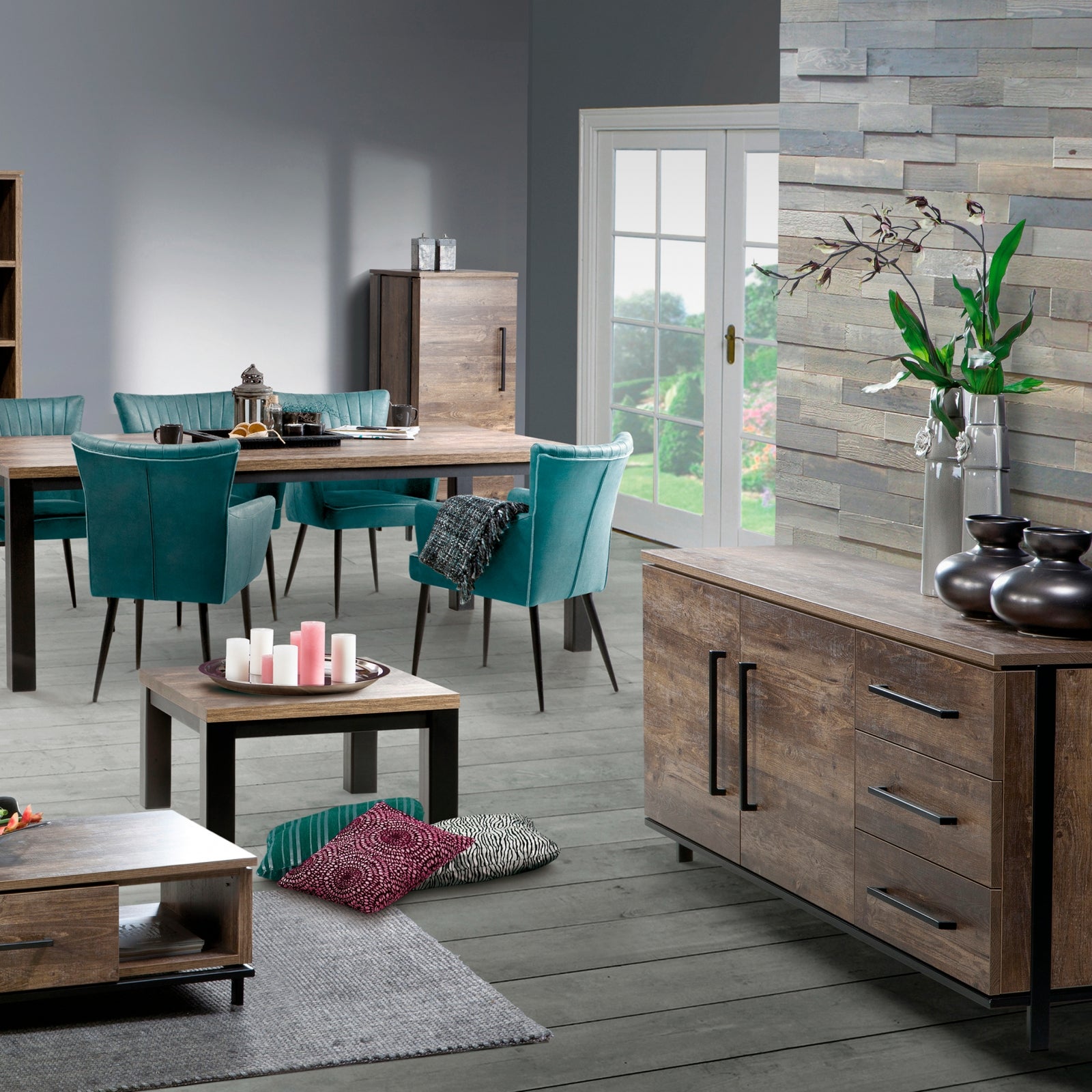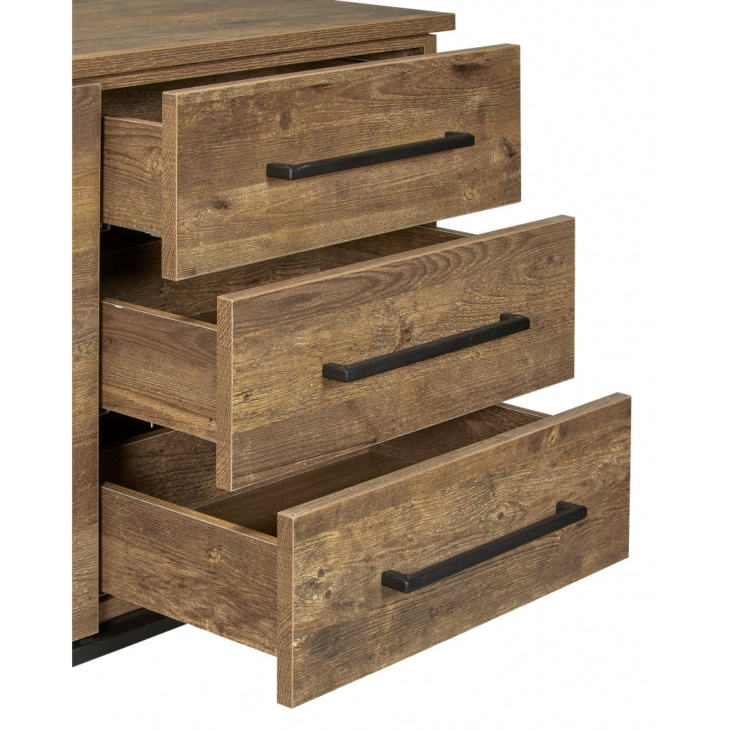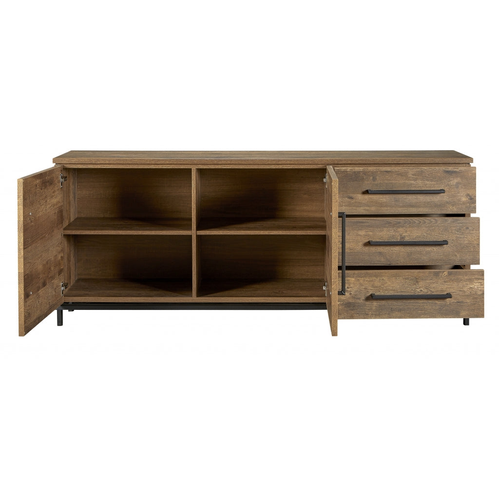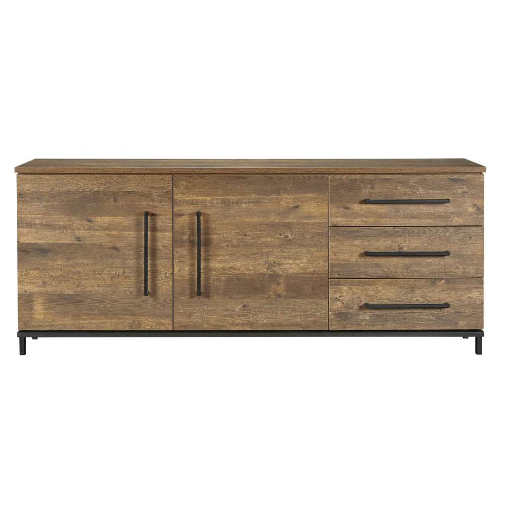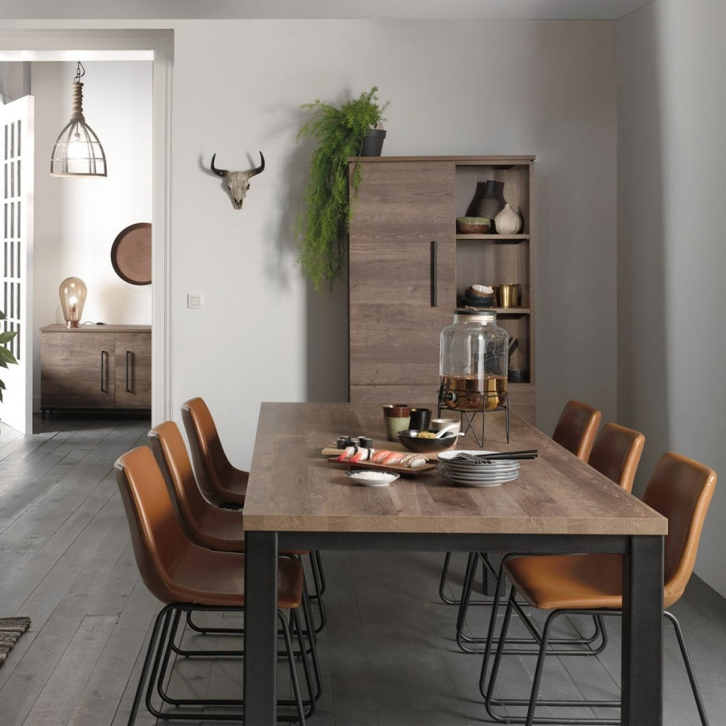Het dressoir Middelburg heeft een stoer en industrieel karakter met een strakke vormgeving. Het heeft de uitstraling van echt hout met een voelbare nerf en een warme gemêleerde kleur. De zwarte metalen accenten, zoals het onderstel en de handgrepen, geven het dressoir een bijzondere uitstraling. Je kunt het Middelburg dressoir goed te combineren met zwarte meubelen om je eigen stoere en industriële woonsfeer te creëren! Indeling: Het dressoir heeft 2 zware deuren, elk met een vaste plank erachter. Daarnaast heeft het dressoir 3 grote laden met veel opbergruimte. De deuren zijn voorzien van een softclose systeem, waardoor ze altijd zachtjes sluiten. Zowel de binnen- als buitenzijde van de kast is afgewerkt in dezelfde kleur. Goed om te weten: Het dressoir Middelburg heeft een breedte van 188 cm, een diepte van 48 cm en een hoogte van 77 cm. Het is gemaakt van lamulux, een hoogwaardig materiaal dat kleur-, slijt- en stootvast is. Het dressoir wordt gemonteerd geleverd.| Afmetingen | |