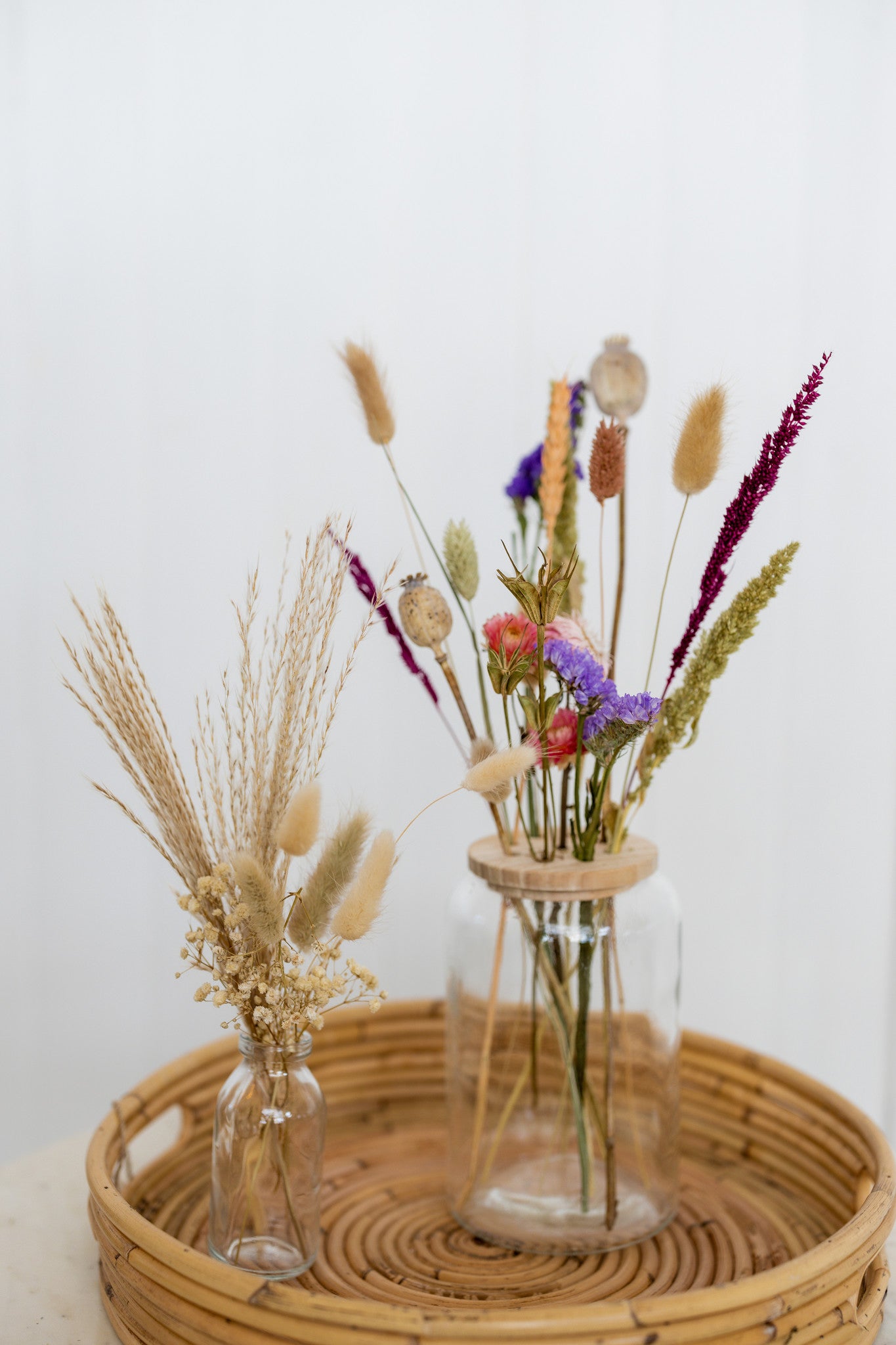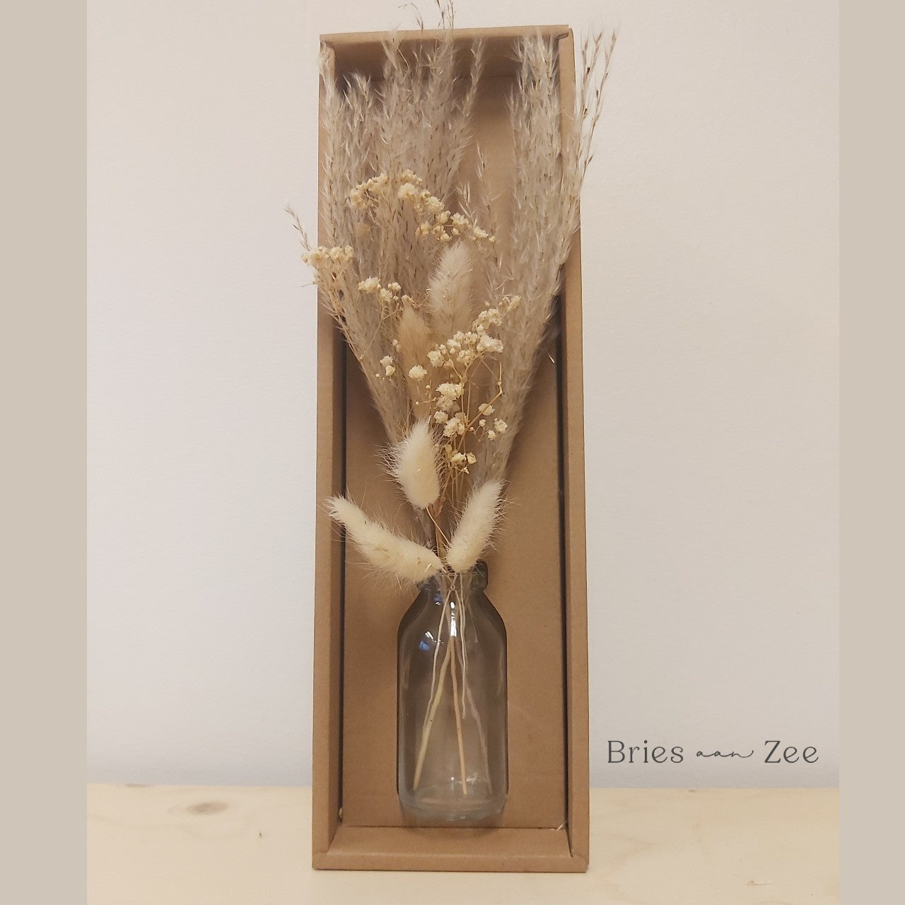Vaasje droogbloemen set naturel wordt geleverd met een schattig boeketje en bijbehorend vaasje. Het vaasje is ongeveer 10 centimeter hoog waarbij de droogbloemen ongeveer 20 centimeter hierboven uitsteken.