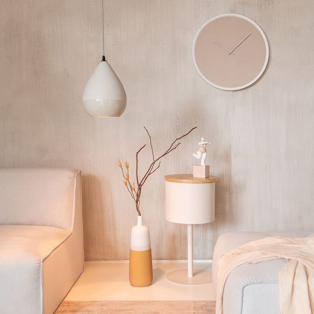 Deze mooie hanglamp heeft een Scandinavisch uiterlijk en design. Hij is peervormig en grijs/beige van kleur. De bovenkant van de lamp is mat, terwijl de onderste rand glanzend is. Dit geeft de lamp een extra bijzondere uitstraling. Verder is de lamp gemaakt van sterk porselein. De lamp heeft de meest gangbare fitting maar E27. Unieke productkenmerken