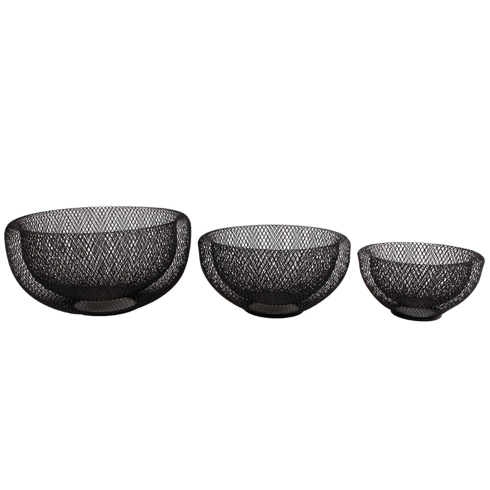 Zeer stijlvolle set van 3 schalen in de kleur zwart. Ze zijn stevig gemaakt van draadmetaal dat niet buigzaam is. Deze schaal is verder multifunctioneel in gebruik, bijvoorbeeld als fruitschaal of decoratieve schaal. Met deze schaal kun je fruit extra goed opbergen. Hij heeft namelijk een open ontwerp waardoor het fruit langer vers blijft! Tot slot passen de schaaltjes exact in elkaar als je ze wilt opbergen. Unieke productkenmerken
