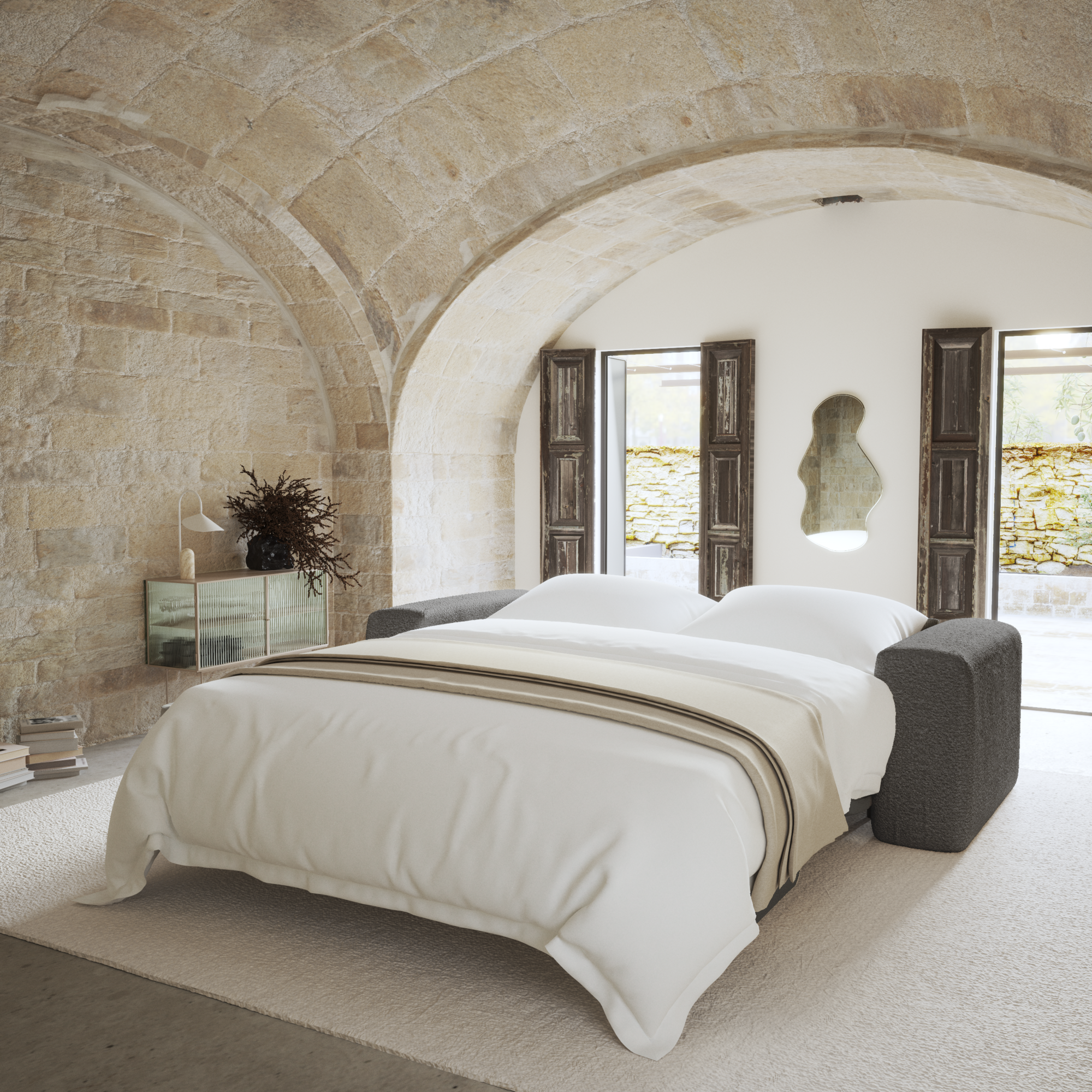 Dunlopillo 160 cm Express converteerbare bank in grafietgrijs bouclé